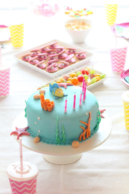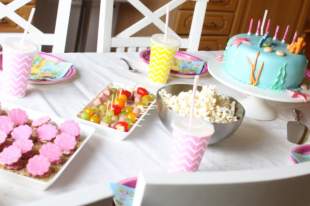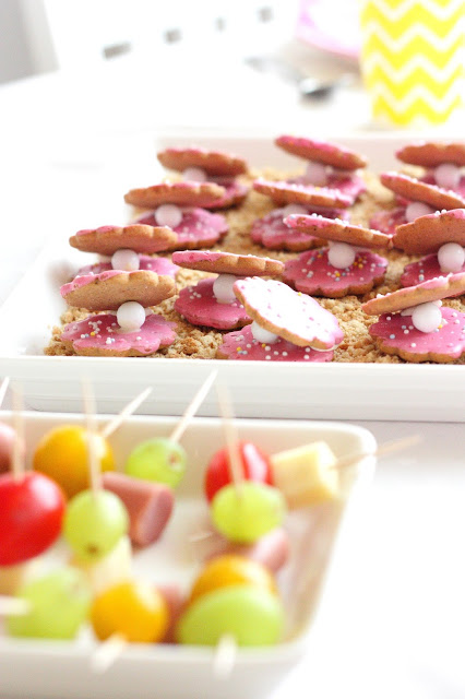 Meriaiheinen kakku ja simpukkakeksit tytön kaverisynttäreillä