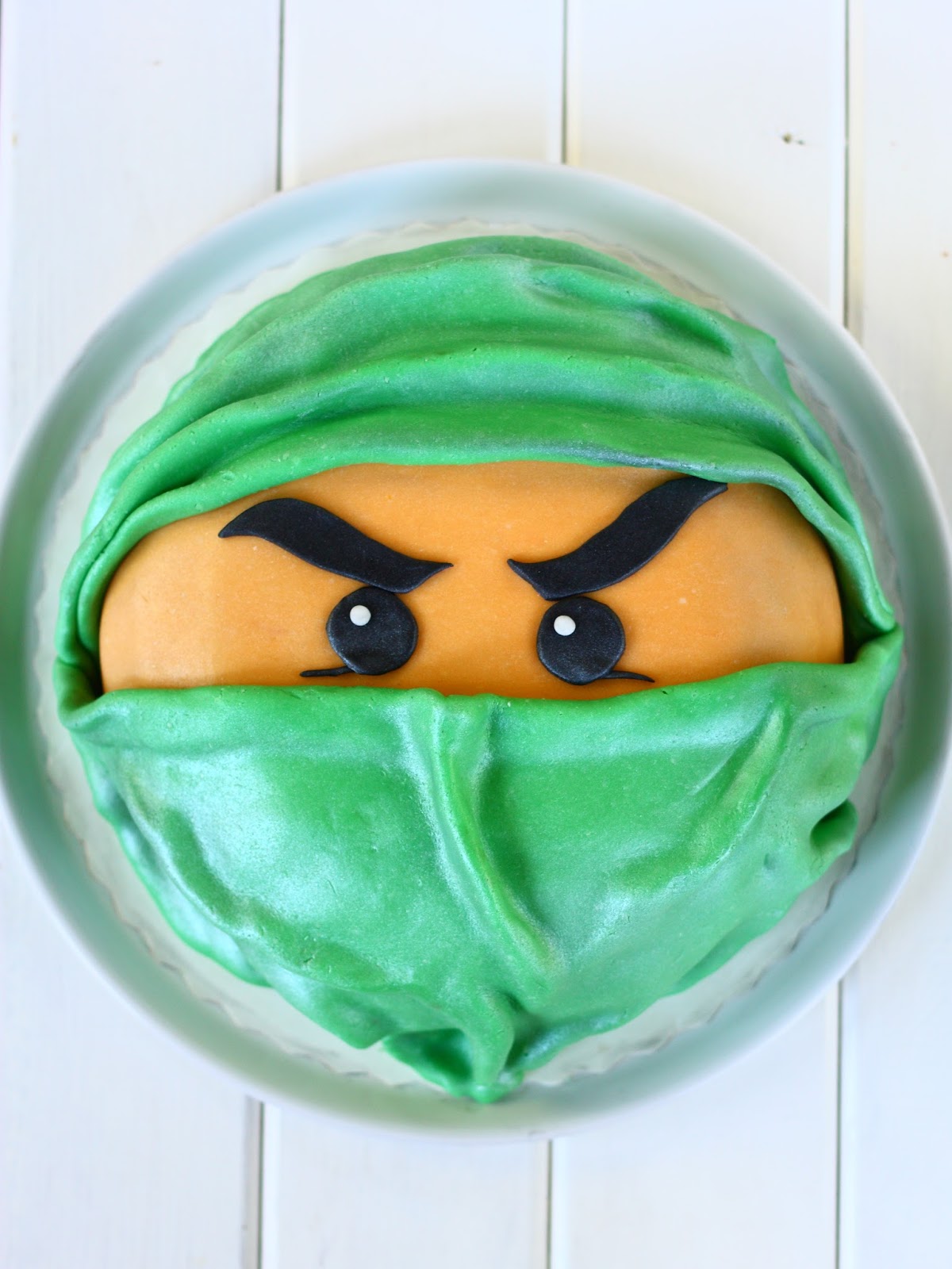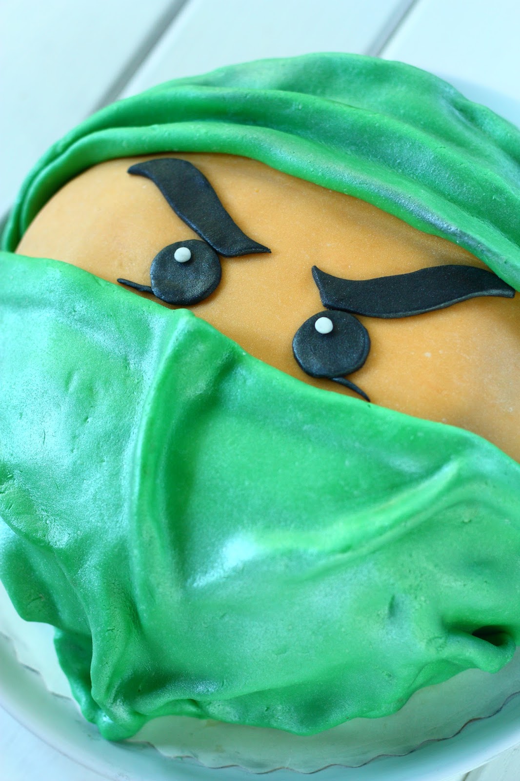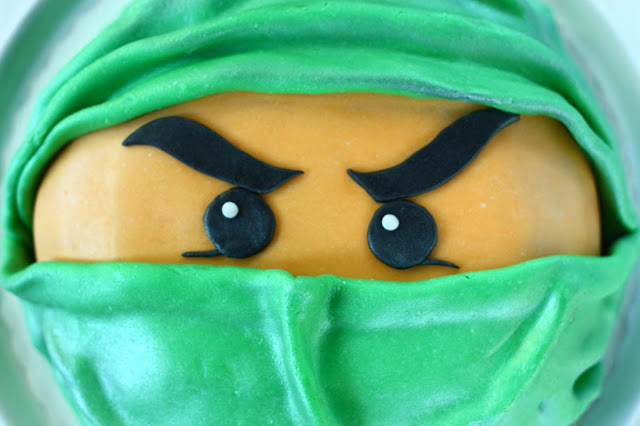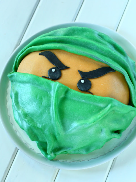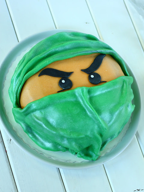 Seitsemän vuotiaan pojan synttäreitä juhlittiin parisen viikkoa sitten ja sain pyynnön tehdä hänen juhliinsa kakun. Poika on hulluna Ninjagoihin ja hänen lempivärinsä on vihreä, joten kakusta tuli tällainen vihreä Ninjago 🙂