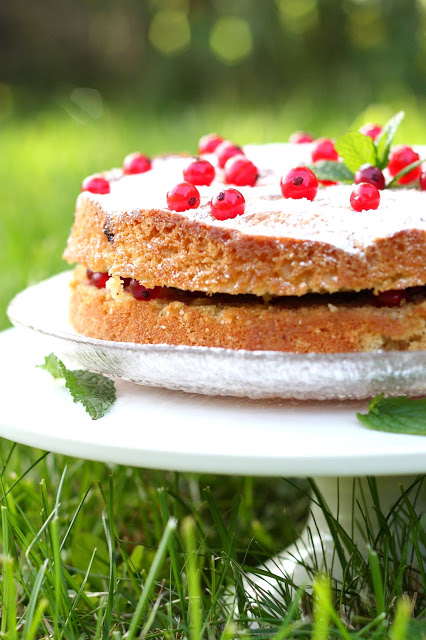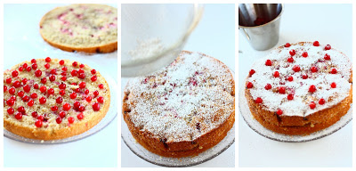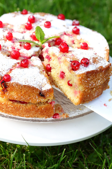 Kakku oli kostutusliemestä johtuen jo heti tuoreeltaan maisteltuna ihanan kostea ja mehevä. Ensimakuna tuli esille voimakas vanilja ja sen jälkeen suussa purskahtelivat tuoreet, kirpeähköt punaherukat. Hieman myöhemmin, maut olivat tasoittuneet eikä vanilja hyökännyt enää niin voimakkaana vaan ennemminki mukavan mietona. Vetäytymisen jälkeen myös makeudessa tapahtui muutos eli kakku oli selvästi makeampi kuin heti tuoreeltaan maisteltuna. Eli sokeria olisi voinut olla kostutusliemessä hieman vähemmänkin (laitoin 0.5 dl), ja toisaalta myös punaherukoita reippaammin (laitoin taikinan päälle vain 2.5 dl ja kakun väliin reilu 0.5 dl). Korjailin nuot muutokset suoraan ohjeeseen sellaisiksi, että lopputuloksen pitäisi olla vieläkin parempi kuin nyt. Mutta siis hyväähän tämä nytkin oli, nams!