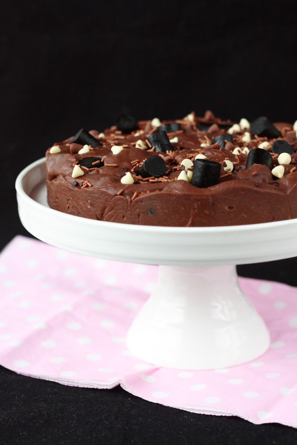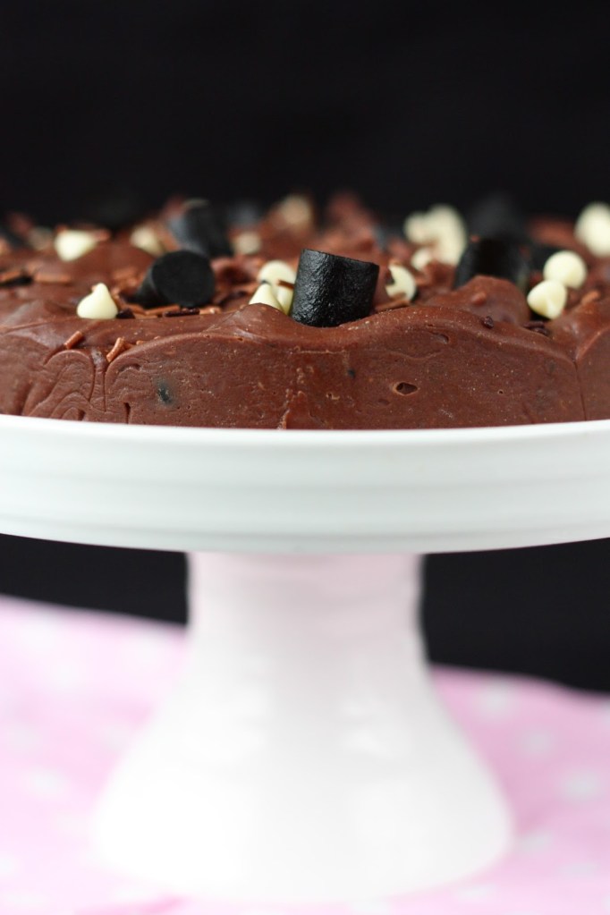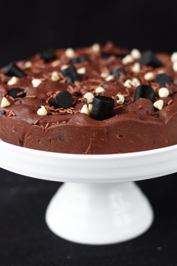 Tämä on jo aikoja sitten tekemäni fudgekakku, mutta ohje on aivan pakko pistää blogiinkin, niiiiin hyvää se on 🙂 Tämä fudgekakku syntyi hetken mielijohteesta, kun löysin kaapista ison pussillisen lakritsin paloja. Jostain kumman syystä tuo pussi oli säilynyt meillä avaamattomana jo pidemmän aikaa. Suklaa ja lakritsi ovat yhdessä mielestäni mitä parhain pari ja pidän erityisen paljon helposta suklaa-fudgesta lakritsinpaloilla ja suolapähkinöillä höystettynä.