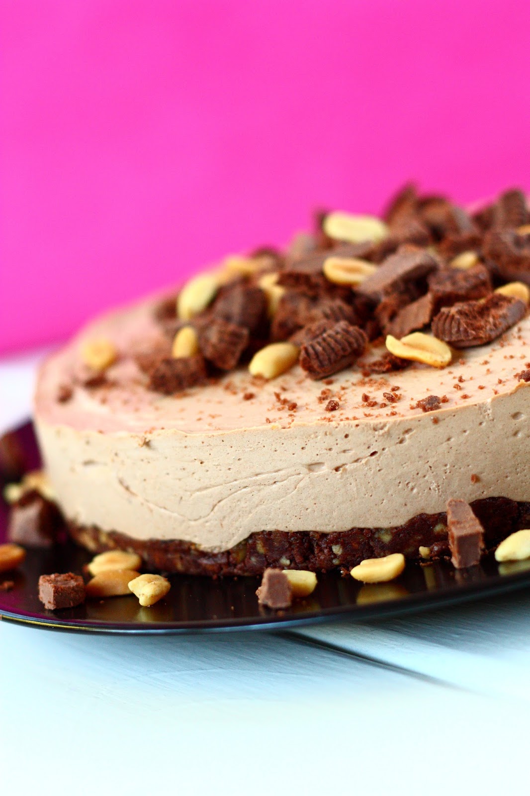 Pohja toimi loistavasti! Se oli pehmeämpi kuin voita käytettäessä, mutta silti hyvinkin kiinteä ja hyvin leikattavissa. Taidanpa käyttää jatkossakin keksipohjaan jotain muuta kuin rasvaa 🙂 Keksien lisäksi murskasin joukkoon hieman suolapähkinöitä. Ei yhtään hassumpi yhdistelmä sekään. Näin tuollaisen suolapähkinä-dominoyhdistelmällä tehdyn pohjan jonkun toisen, muistaakseni vadelmaisen juustokakun ohjeessa, kehujen kera. En ottanut ohjetta sen tarkemmin ylös, sillä ajattelin löytäväni sen kun hetki on. Mutta tässä sitä ollaan. Vinkki käytetty hyväksi, ja alkuperäisohje hukassa. Määrät heittelin kuitenkin omasta hatustani välillä maistellen.