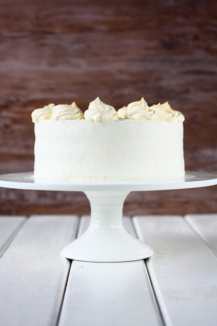 Tajusin tässä eräs yö, että mieheni nimpparit olivat seuraavana päivänä, enkä ollut uhrannut ajatustakaan kakulle tai muulle tarjottavalle. Onneksi olin vähän aikaa sitten testaillut mehevän vaalean kakkupohjan ohjetta ja pakastanut tuon pohjan. Kaivoinkin siis pohjan heti aamusella pakkasesta sulamaan ja aloin kuumeisesti miettiä täytettä. Pohja on melko makea, joten täyte sai olla raikas. Hedelmäkulhossa nökötti sitruuna, joka halusi selvästi päästä osalliseksi kakun tekoon, joten tein kakkuun sitruuna(-appelsiini)täytteen, josta tuli samalla kakun pintakuorrutus.