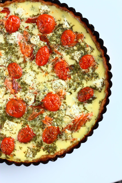Voi herttiles, kun tästä piirakasta tuli hyvä! Vai voiko savulohta, fetaa ja aurajuustoa sisältävä suolainen piirakka muuta ollakaan!?!