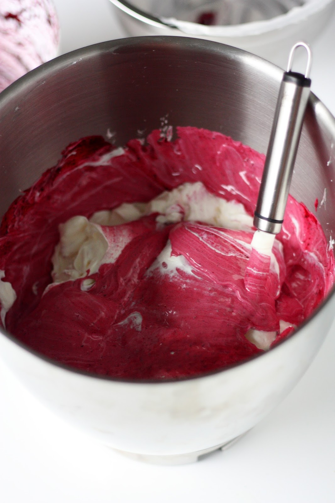 Tein mustaherukkamoussea hieman pienemmän (noin 3/4) annoksen kuin viime kakussa mansikkamoussea, ja samalla ohje hieman muokkaantui. Ehkäpä yövalvomiset väsymyksineen olivat saaneet aivoni jumiin, ja ajatuksissa laitoin liivatetta liikaa. Tajusin asian vasta, kun maistelin jääkaappiin jättämääni pientä jämäannosta. Korjasin suoraan ohjeeseen hieman pienemmän määrän. Itse siis käytin 3 tl liivatejauhetta, kun jo 2.5 tl riittänyt. Vahinkoa ei kuitenkaan tapahtunut, sillä valmiissa kakussa tuota liivatemokaa ei huomannut lainkaan, vaan täyte oli aivan ihanan pehmoinen, miltei höttöinen. Olikohan syynä se, että käytin kakun pakkasen kautta. No, mutta ensi kerralla kokeilen kuitenkin, pärjääkö vähemmälläkin määrällä 🙂