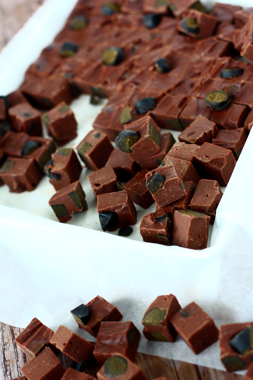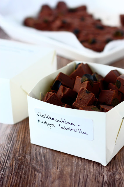 Mokka-suklaafudge lakritsilla Koosta riippuen 100 palaa