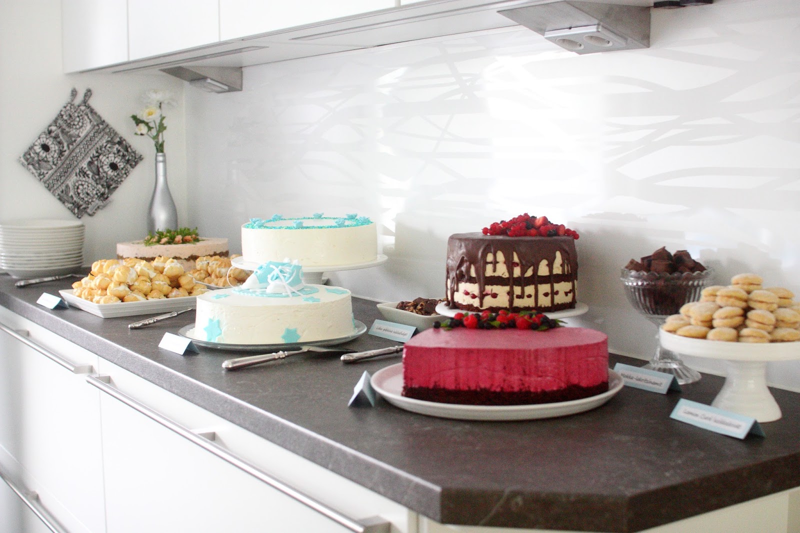 Näitä meillä oli tarjolla ristiäisissä. Yllä olevassa kuvassa lusikkaleivät ovat tuolla oikeassa reunassa. Laitan vielä lähiaikoina yhteenvetopostauksen kaikista kuvassa näkyvistä muistakin tarjottavista. Tässä tämä lusikkaleipien ohje 🙂
