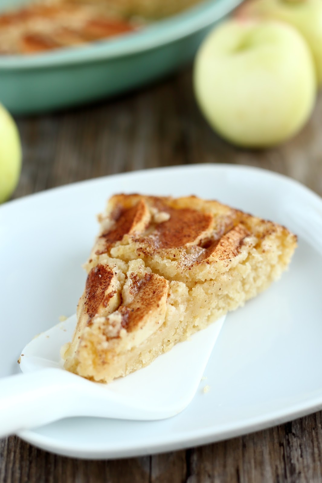 Tein piirakan jo jokin aika sitten, kun kaveri oli tulossa kylään vauvansa kanssa omenapuiden notkuessa omppuja. Kaivoin vanhan tutun ja turvallisen murupäällisen sisältävän omenapiirakan ohjeeni esille ja aloin leivontapuuhiin. Vaikka kauramurupäällinen on ehdoton lempparini tällaisissa piirakoissa, jätin sen tällä kertaa pois ja ripottelin pinnalle vain kanelia ja sokeria. Samalla testailin voiko öljyä ja sokeria vielä vähentää koostumuksen ja maun kärsimättä. Ja kyllä näimmä vaan voi. Muutoksista huolimatta piirakassa oli juuri passelisti makeutta. Mutta sokerin vähentämisestä seurasi pieni muutos rakenteeseen. Alkuperäisohjeen höttöinen ja kuohkea rakenne muuttui hieman tahmaisemmaksi, tosin ei mitenkään huonolla tavalla. Piirakasta tuli vain erilainen, mutta silti aivan ihanan makuinen ja niin kostea, ettei se kaivannut viereensä mitään ylimääräisiä kastikkeita tai jäätelöä. Kaverini mukaan tämä oli kuin äidin omppupiirakka 🙂