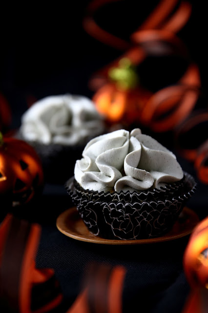 Halloween-leivonnaisia on saanut ihastella monissa blogeissa jo jonkin aikaa. Halloween onkin jo tosi lähellä ja ajattelin itsekin tehdä jotain teemaan liittyvää. Tällä kertaa syntyi tällaiset mehevät sitruunamuffinssit salmiakki-kuorrutuksella.