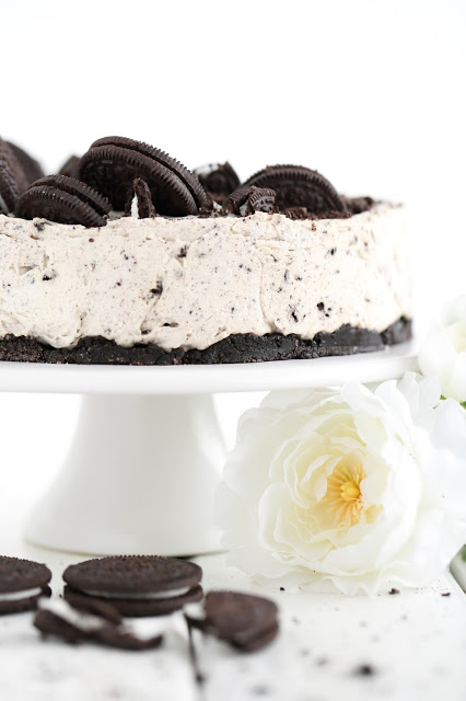Kakku on ihanan helppo ja nopea tehdä. Liivatettakaan ei tarvita, sillä keksit imevät itseensä kosteutta ja tukevoittavat täytettä. Liivatteettomuudesta ja osin myös mascarponesta johtuen täyte onkin ihanan pehmoinen, mutta se pysyy siitä huolimatta oikein mainiosti kasassa. Kakun mousseosa maistuu hyvin miedosti Oreo-kekseiltä. Pohja tuo kakkuun reilusti Oreo-keksimäista makua. Kokonaisuudessaan aivan mahtava kakku, vaikka itse sanonkin! Ei ehkä niin juustokakkumainen kaikessa pehmeydessään kuin normijuustokakut, mutta eipä se haitannut lainkaan.