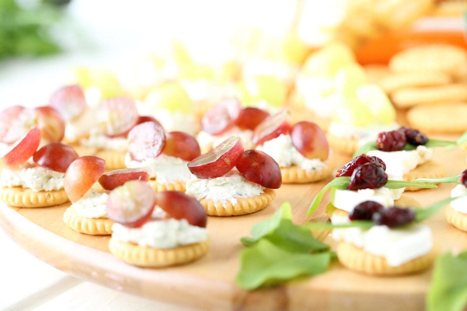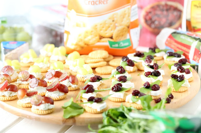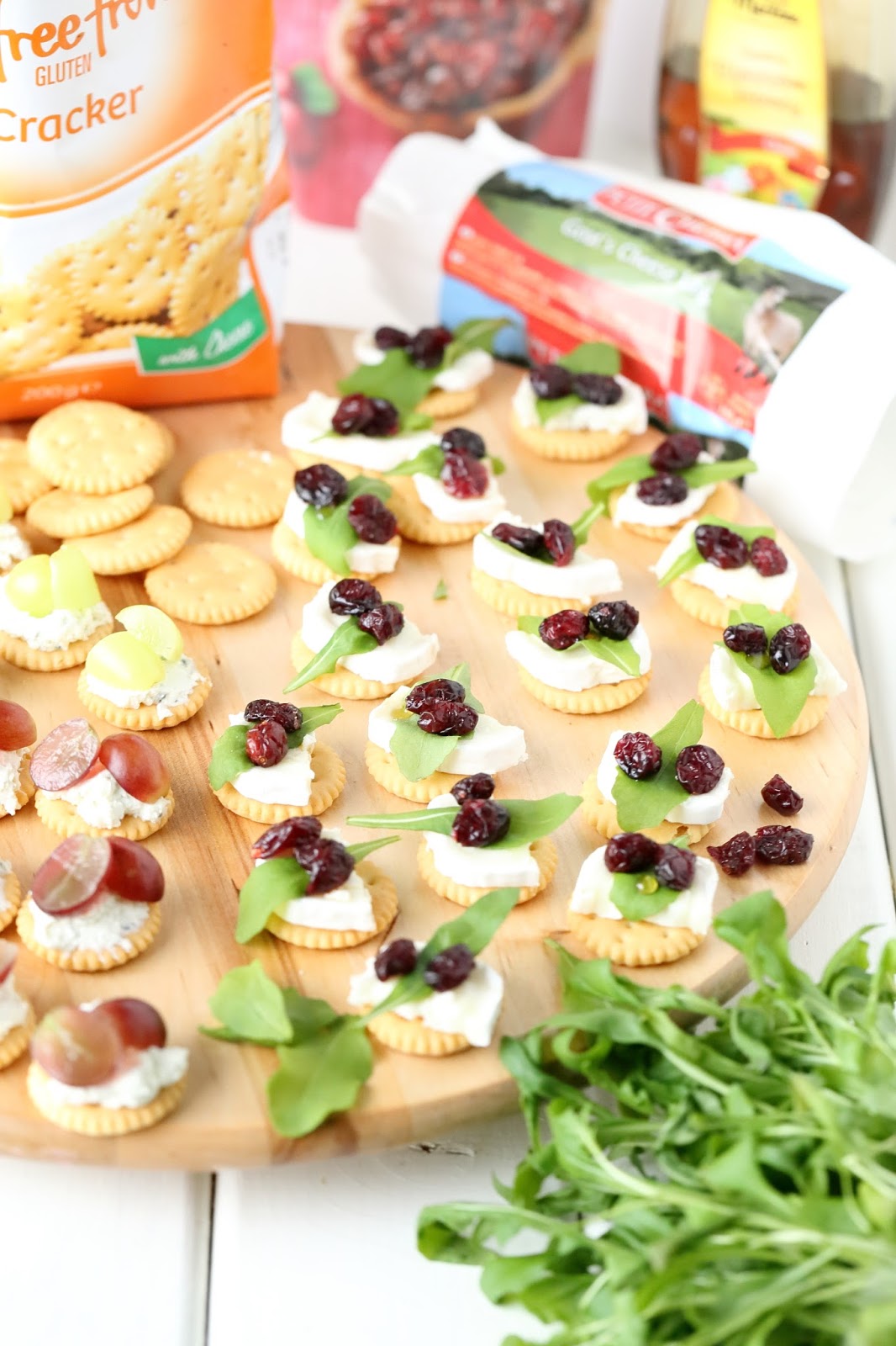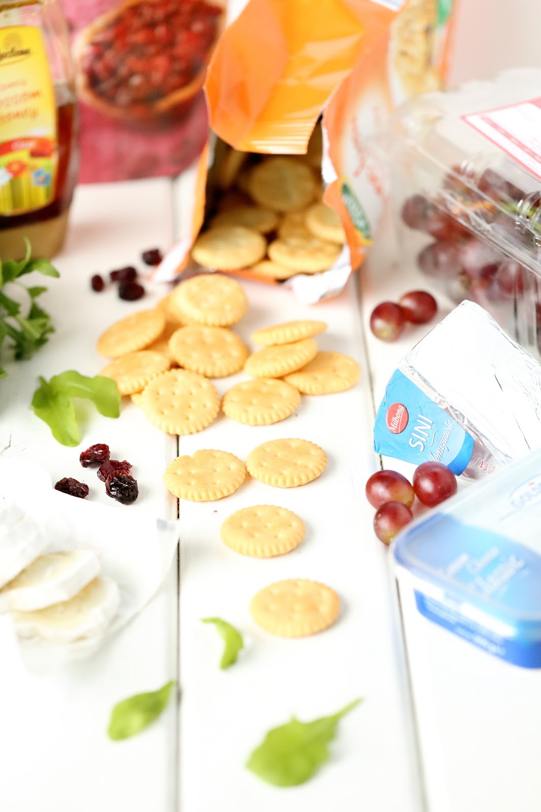 Oon ihastunut kermaisen suolaisen vuohenjuuston, makean hunajan ja karvaan rucolan yhdistelmään. Ajattelin juustoisten suolakeksin sopisivan samaiselle yhdistelmällä pohjaksi, joten nappasin suolakeksien kaveriksi LIDLin hyllyiltä vuohenjuustoa, rucolaa ja hunajaa sekä myös kuivattuja karpaloita tuomaan hieman lisämakeutta. Ja kyllä vain tuo yhdistelmä toimi tässäkin, erittäin hyvin. Muutama keksi tuli ihan vain testimielessä maisteltua ja ihmeteltyä, kuinka hyviä ne olivatkaan 🙂