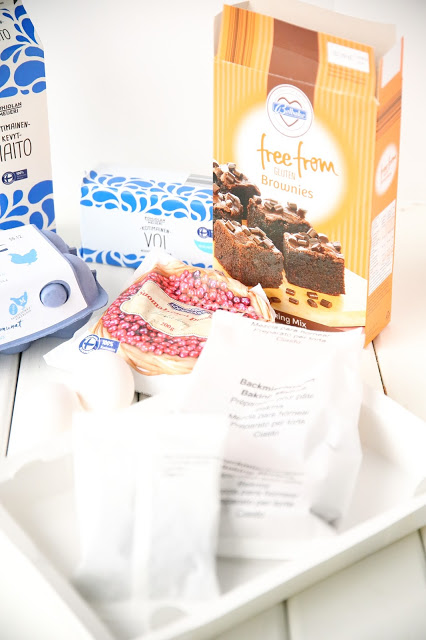 LIDListä löytyvä Free From Gluten Brownies-pakkaus on kätevä, sillä siinä on mukana valmiin jauheseoksen ja suklaahippujen lisäksi myös paistovuoka. Näin ei tarvitse yrittää etsiä sopivaa vuokaa omista kaapeista, vaan paistoväline kulkee kätevästi paketin mukana minne vain. Pakkauksen takaa löytyy näppärästi myös ohje taikinan tekemiseen. Brownies-paketin lisäksi tarvitaan vain voita, maitoa ja pari munaa. Tämä brownies on todellinen pikapelastaja myös kiireisempään arkeen, jolloin aikaa ei ole turhan paljon ja pöytään pitää saada tehtyä jotain tarjottavaa.