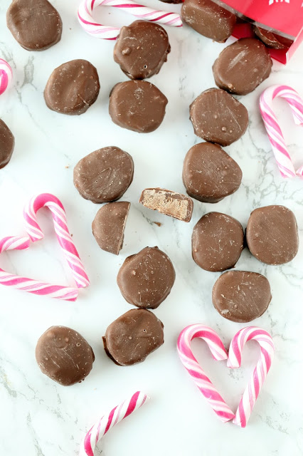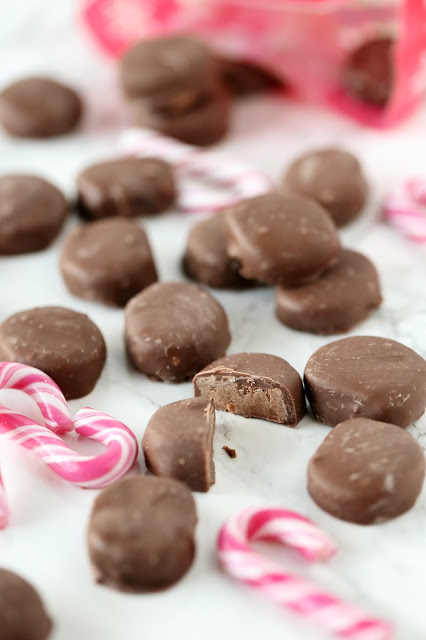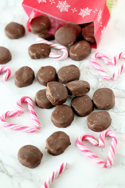 Sulata candy  melts (tai suklaa) mikrossa välillä sekoitellen. Dippaa minttukiekot seokseen.