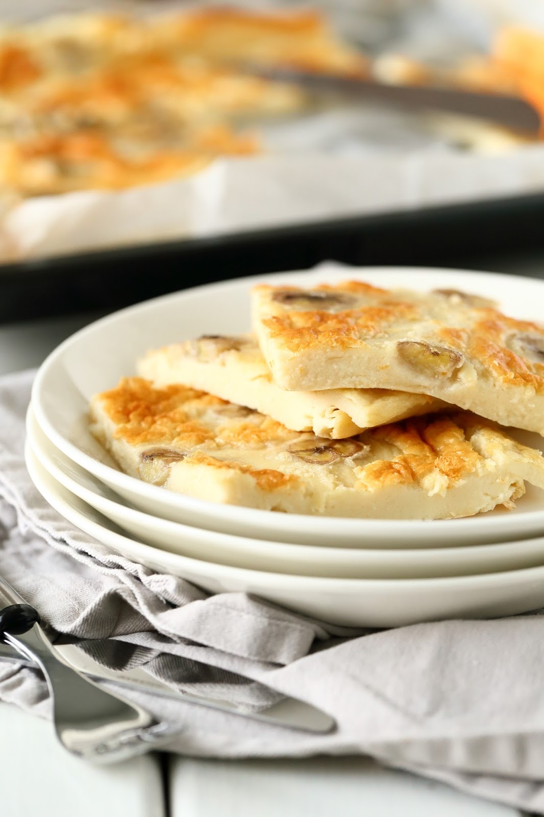 Mein nuorempi (4 v) tyttö oli innoissaan auttamassa pannukakun tekemisessä. Hän rikkoi munat, sekoitti taikinan aineet keskenään ja pilkkoi banaanit. Lopuksi hän vielä heitteli banaaninpalat taikinan päälle ennen uuniin laittamista. Eli tämän(kin) pannukakun tekeminen onnistuu hienosti myös lasten kanssa. Ja syöminen, se tapahtuu lasten kanssa tuplanopeudelle tavalliseen pannariin verrattuna. Ainakin kun päälle heittää nokareen jäätelöä 🙂