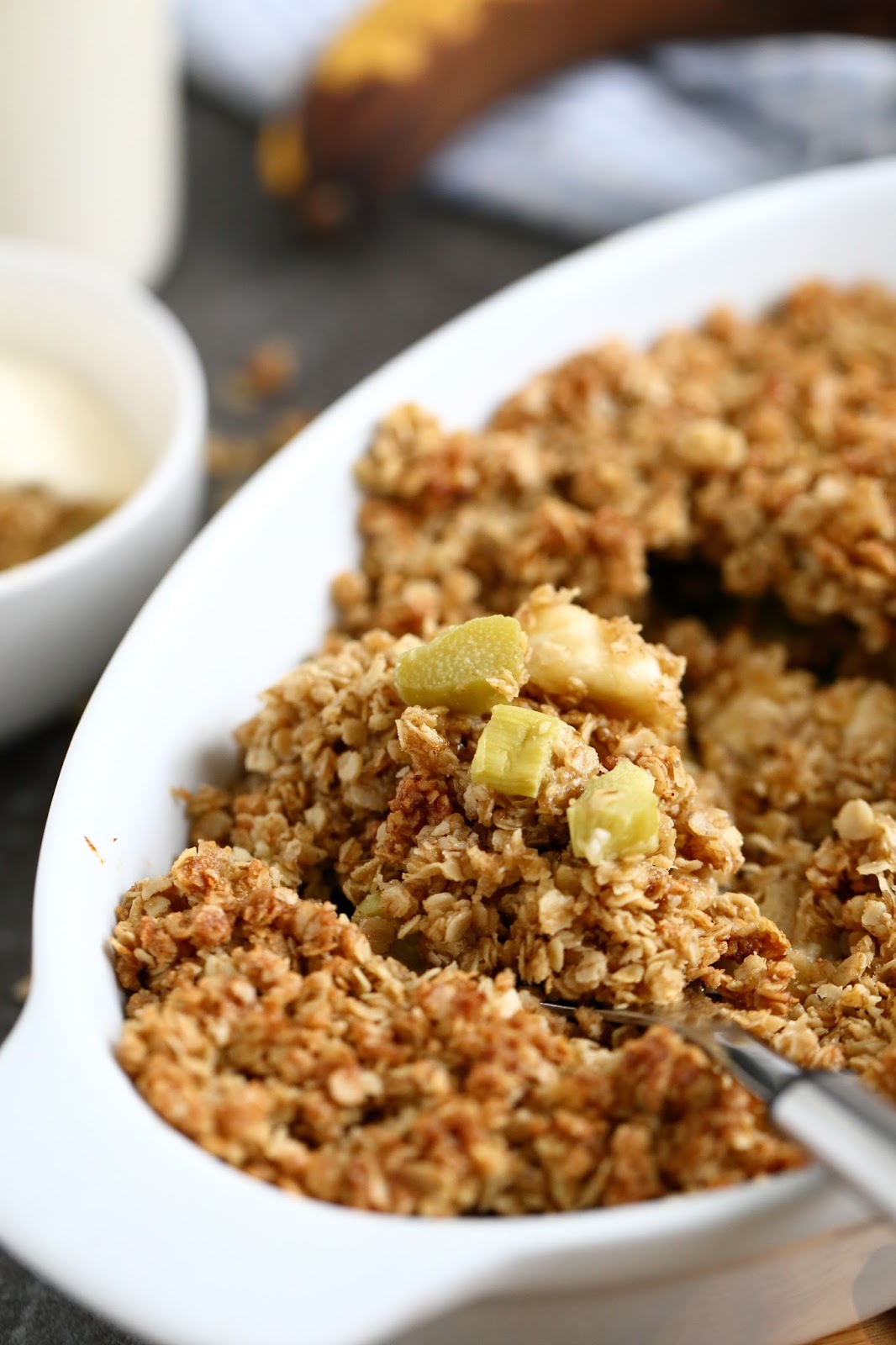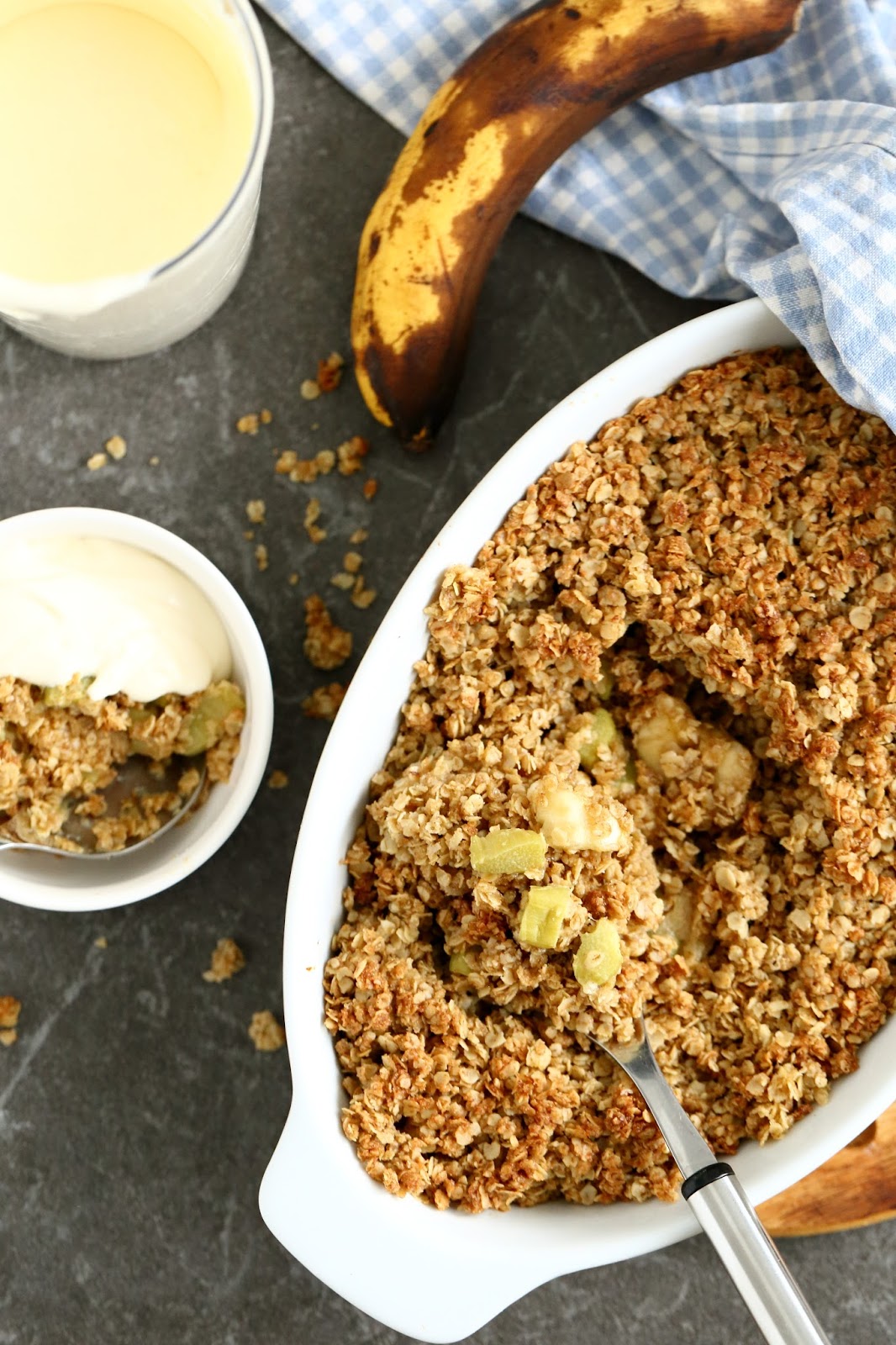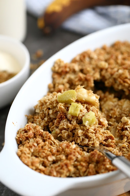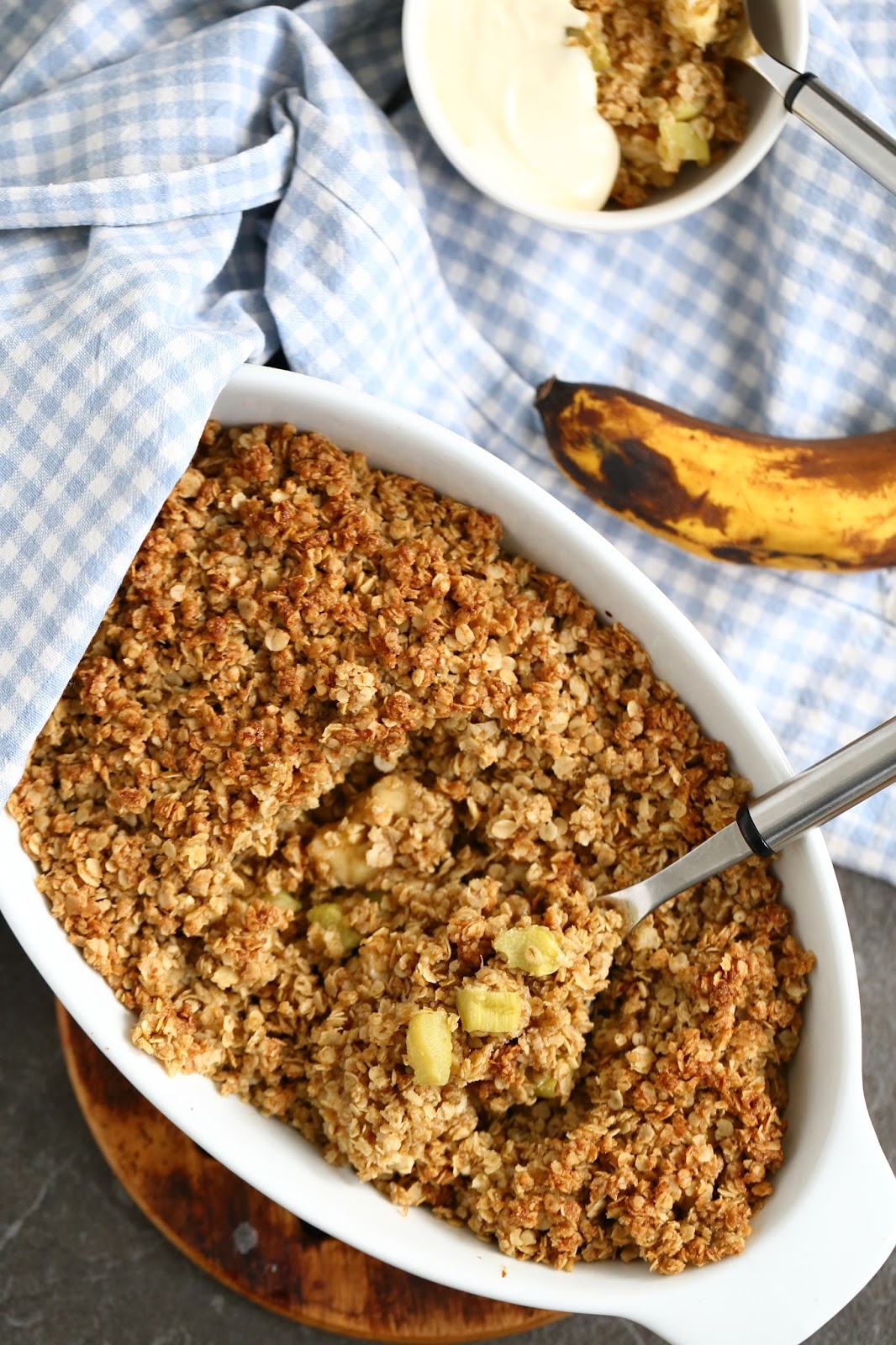 Raparperi-banaani -kaurapaistos