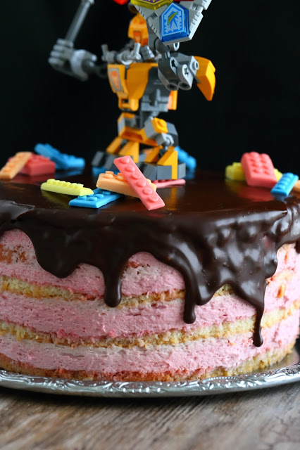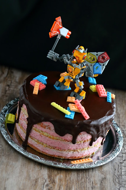 Veljenpojan synttäreitä vietettiin huhtikuun lopulla. Toiveena isoksi kasvaneella pojalla oli Lego Nexo -kakku. Kakku muotoutui lopulta tämän näköiseksi Axl-kakuksi, jossa oli sisällä mehevä vaalea kakkupohja sekä vadelmamoussea.