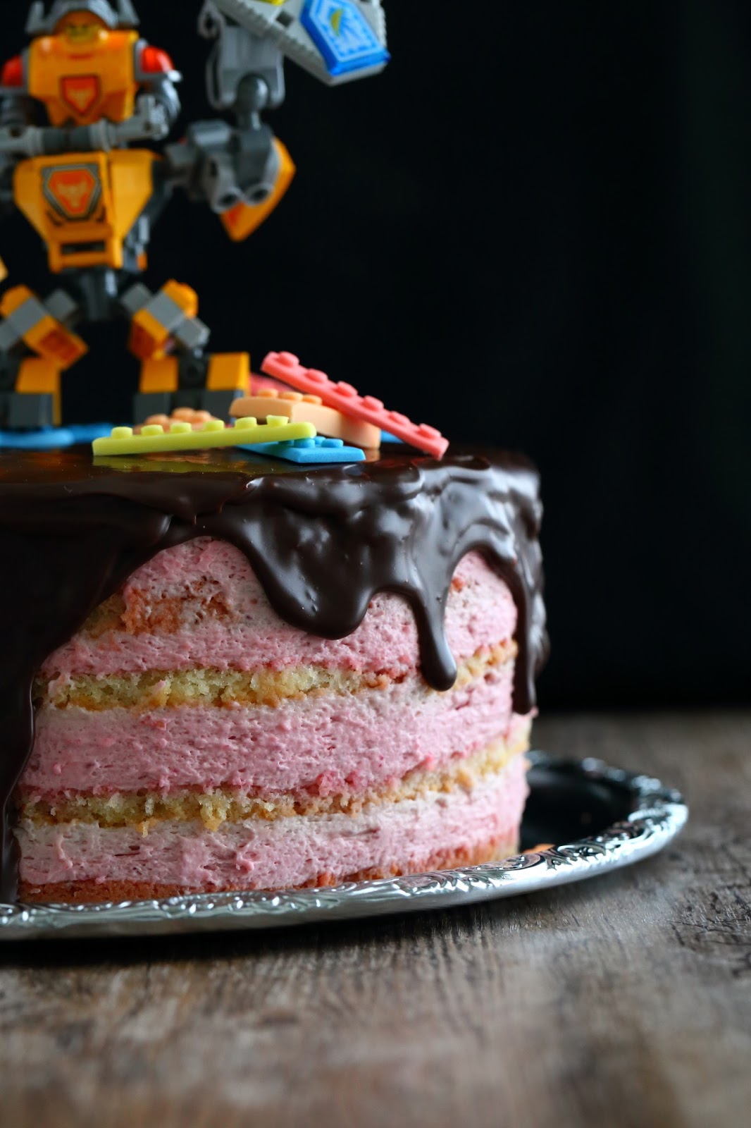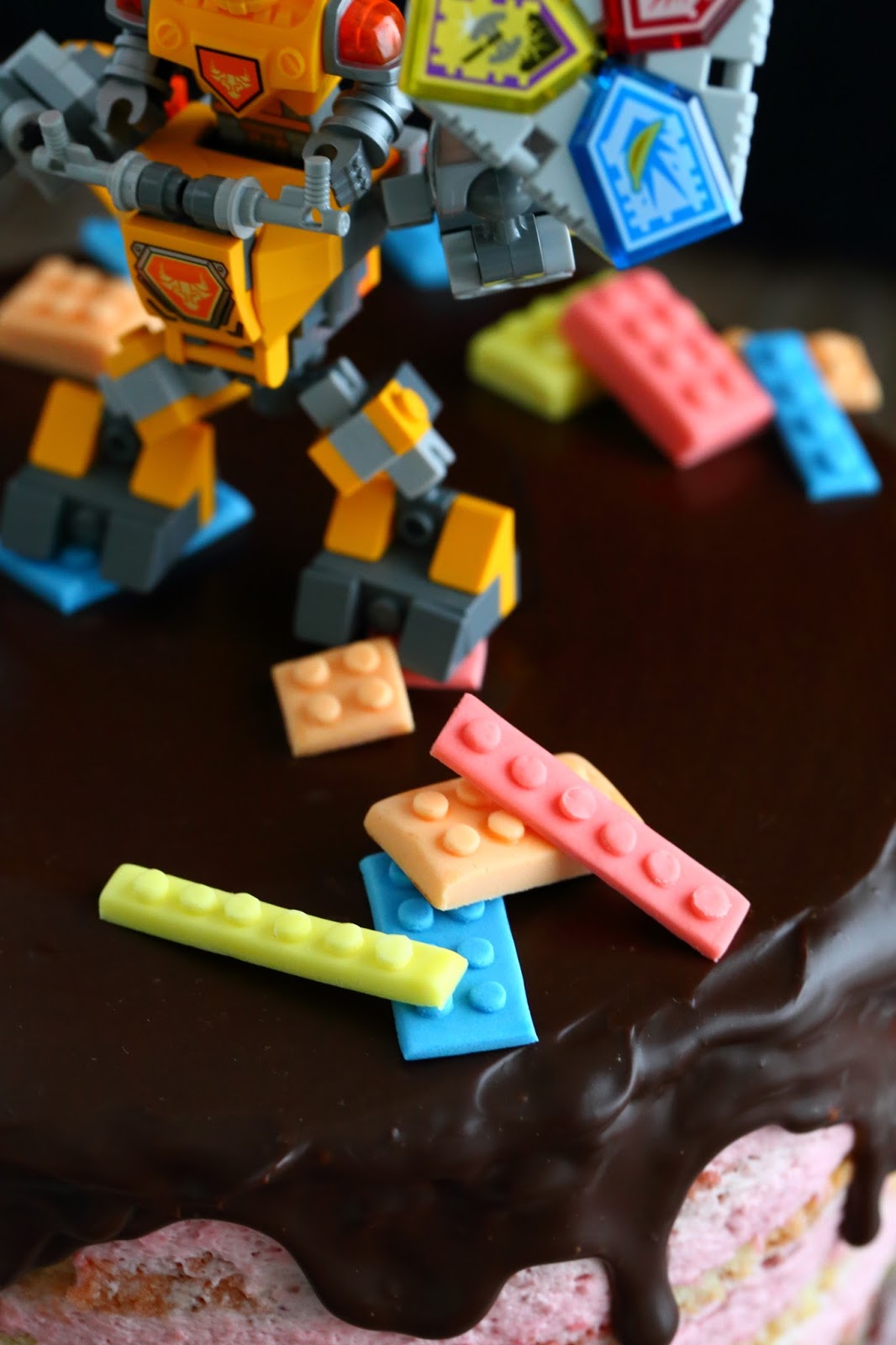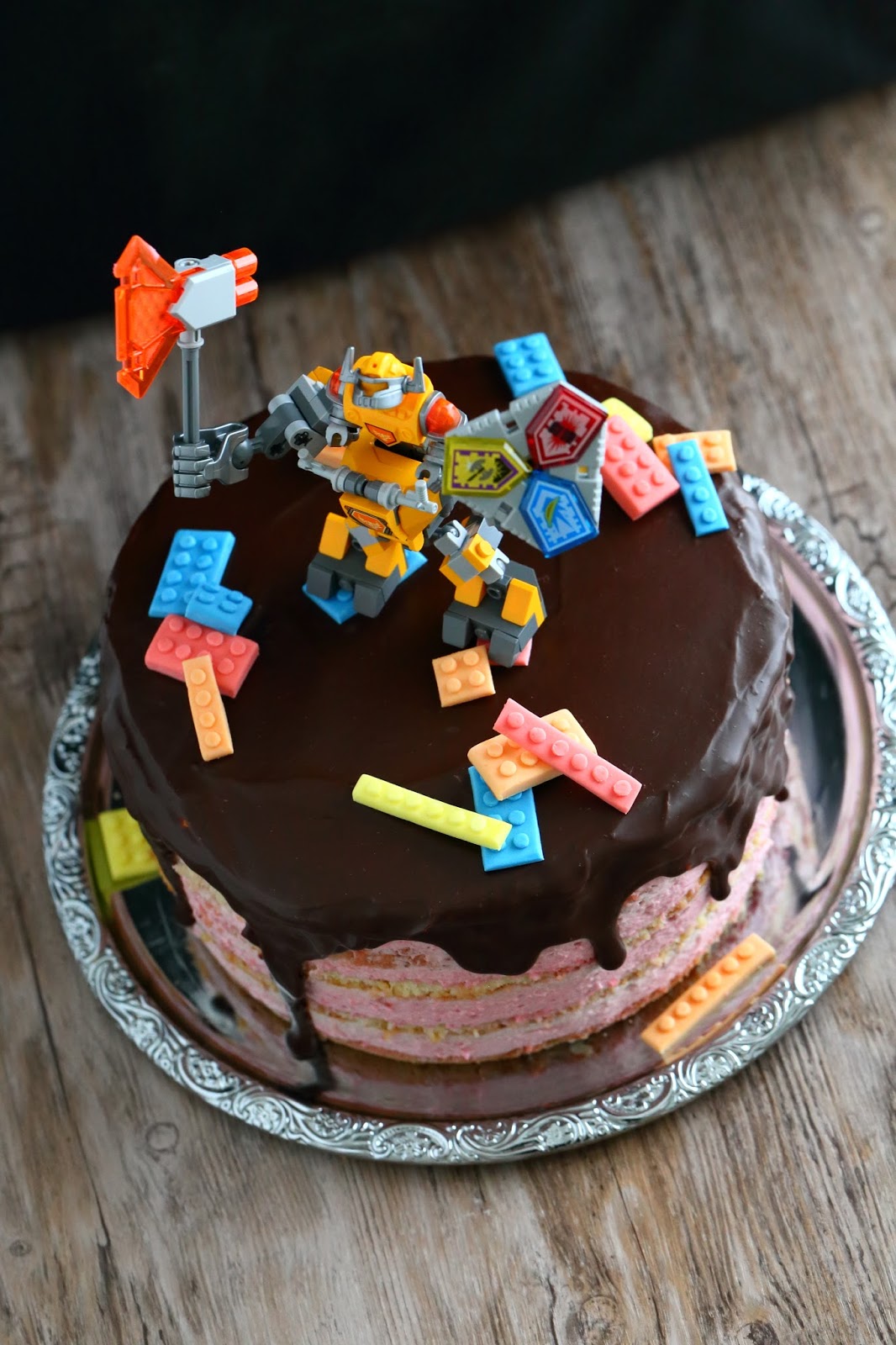 Veljenpojan synttäreitä vietettiin huhtikuun lopulla. Toiveena isoksi kasvaneella pojalla oli Lego Nexo -kakku. Kakku muotoutui lopulta tämän näköiseksi Axl-kakuksi, jossa oli sisällä mehevä vaalea kakkupohja sekä vadelmamoussea.