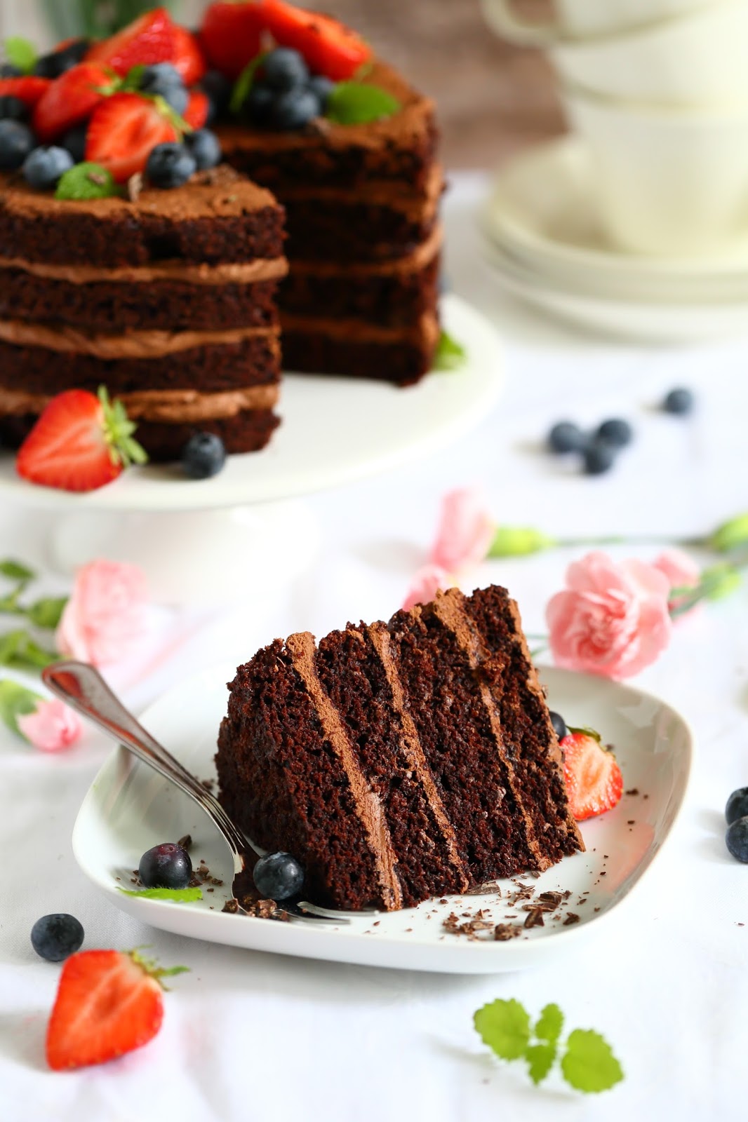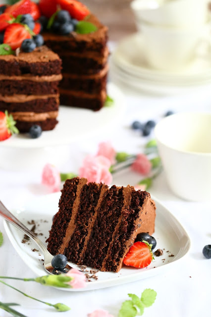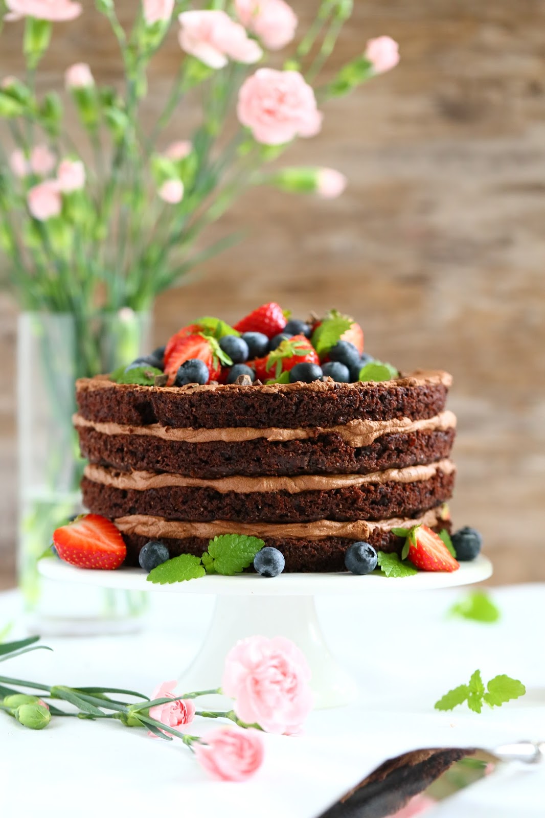 Törkeen hyvä suklaakakku suklaamoussetäytteellä