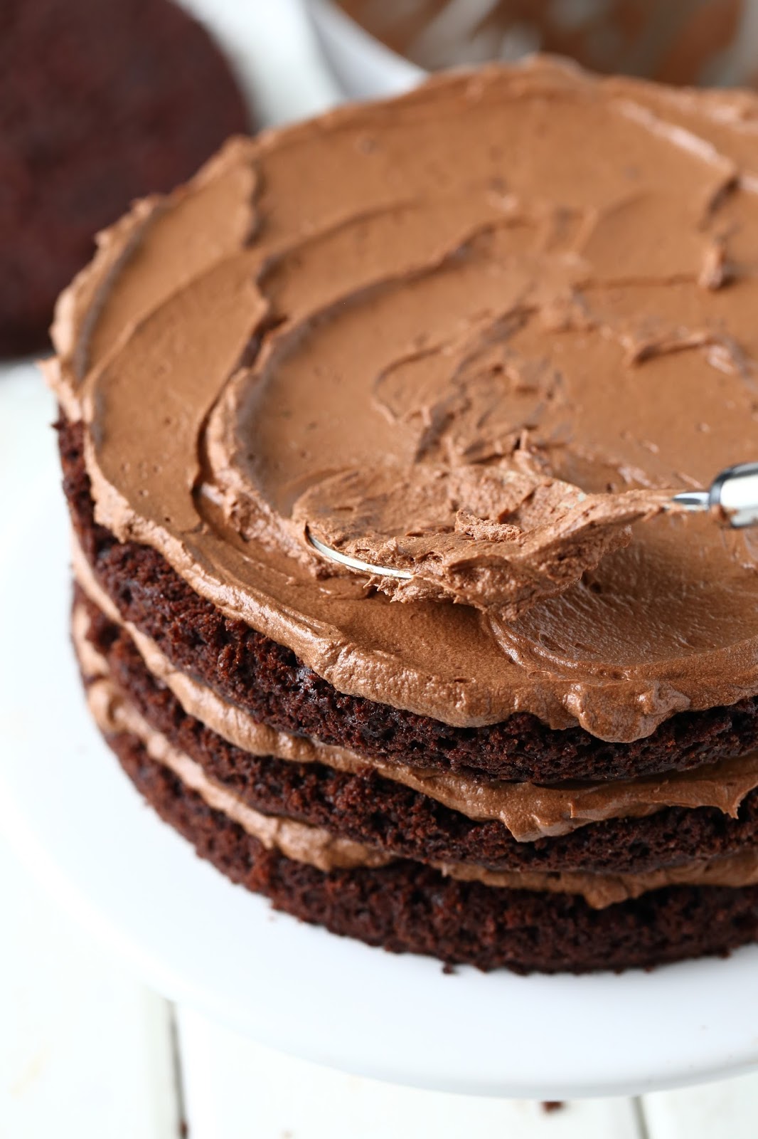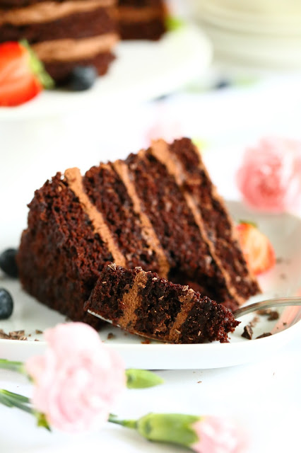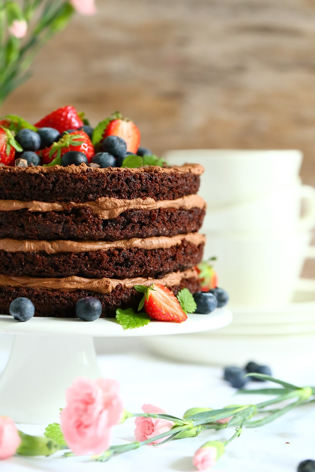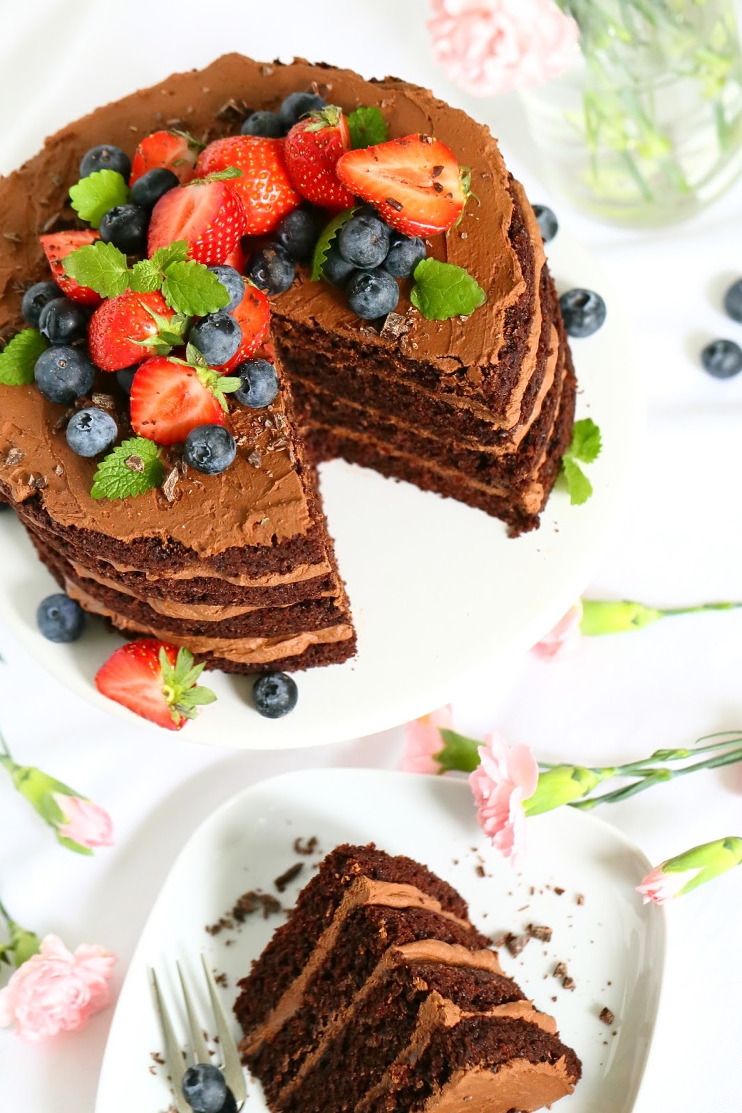 Törkeen hyvä suklaakakku suklaamoussetäytteellä