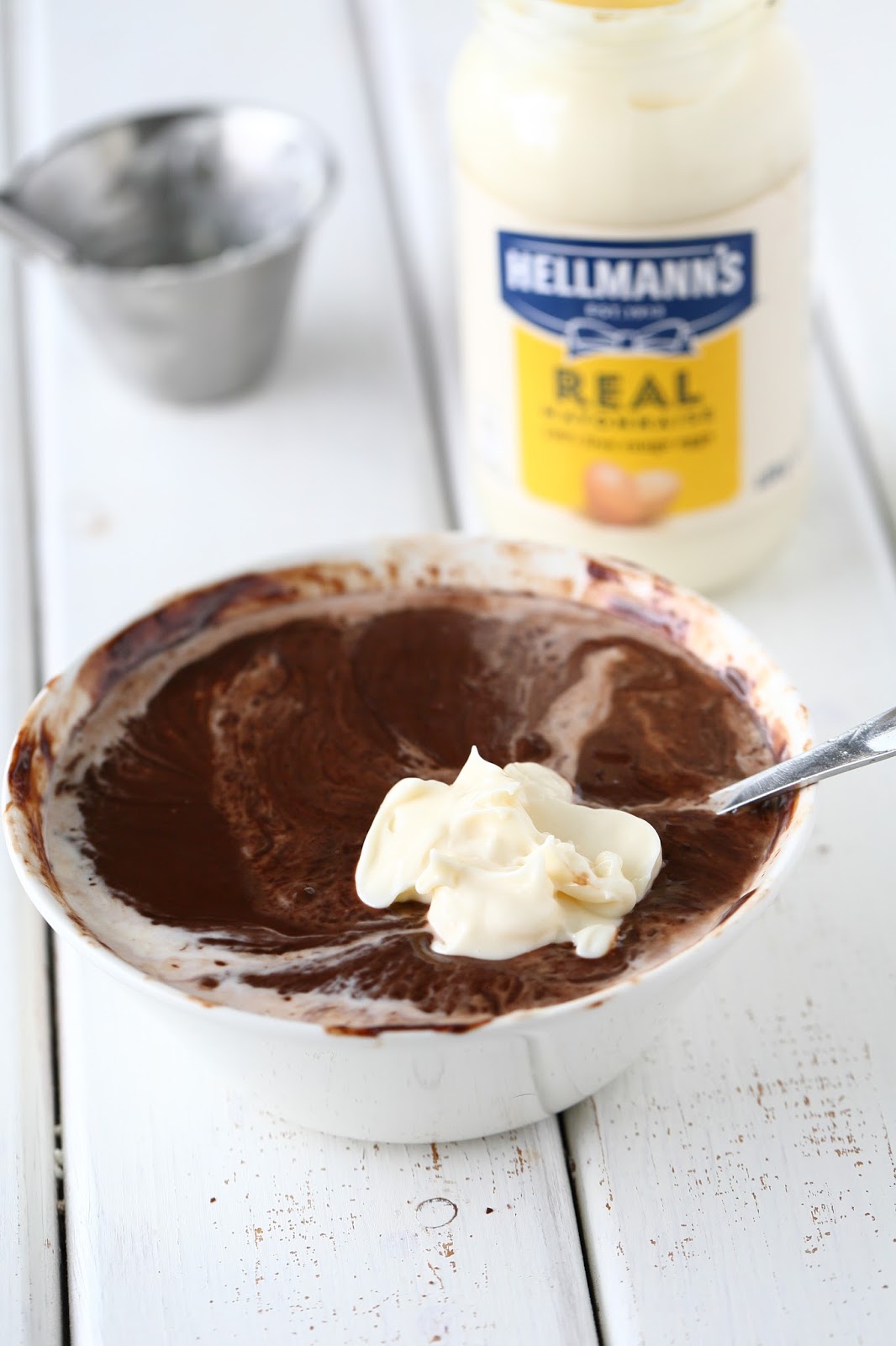 Nyt ajattelette varmaan, että Suklaapossu on lopullisesti sekaisin, kun meni laittamaan majoneesi suklaakakkuun ja vieläpä kehuu lopputulosta. Mutta uskokaa tai älkää, se todellakin toimii! Eikä ihme. Hellmann’sin majoneesihan sisältää mm. rypsiöljyä, munia, etikkaa, suolaa ja sokeria. Ja nuohan ovat juuri ne aineet, millä suklaakakusta saadaan älyttömän mehevä, pehmeä ja maukas! Rypsiöljyn takia Hellmann’sin majoneesi sisältää pehmeää tyydyttymätöntä rasvaa sekä runsaasti omega 3-rasvahappoja. Muuta rasvaa tähän kakkuun ei tulekaan, vaan majoneesi riittää pitämään kakun kostean mehevän. Voisi melkein ajatella, että tämä majoneesia sisältävä kakku on hyvän rasvanlaadun ja suklaan takia jopa terveellistä 🙂