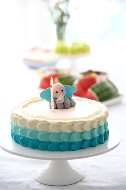 Miten on mahdollista, että Juhannuskin meni jo? Mihin se aika oikein katoaa? Meillä oli tänä(kin) vuonna sen verran rauhallinen Juhannus, että sain naputeltua ylös blogiin tulevia juttuja, erityisesti lastemme synttäritarjottavia. Aloitetaanpa 1-vuotiskakulla, jossa testinä munaton vaalea kakkupohja sekä kaunis ja yksinkertainen ombre-pursotus.