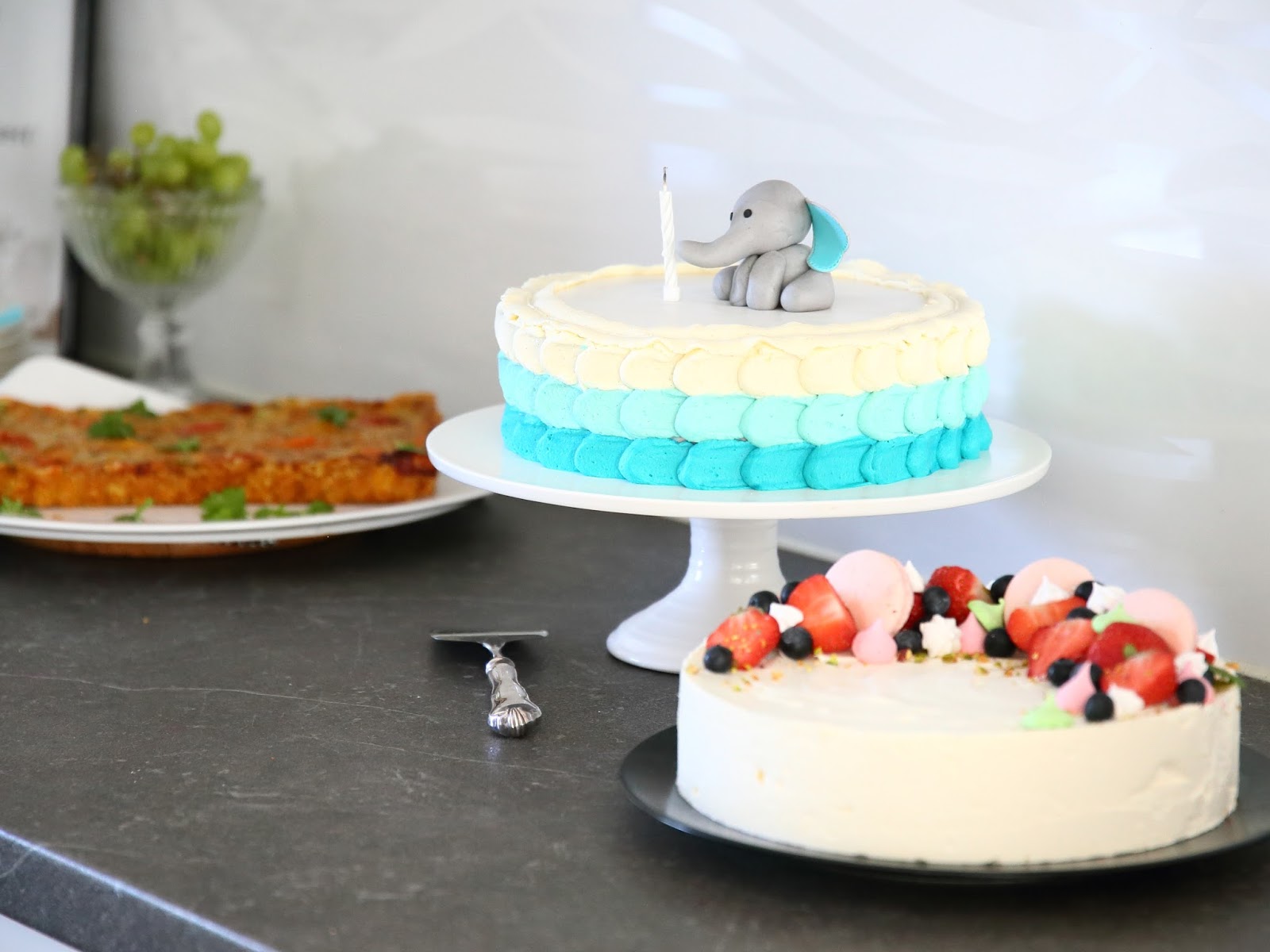 Miten on mahdollista, että Juhannuskin meni jo? Mihin se aika oikein katoaa? Meillä oli tänä(kin) vuonna sen verran rauhallinen Juhannus, että sain naputeltua ylös blogiin tulevia juttuja, erityisesti lastemme synttäritarjottavia. Aloitetaanpa 1-vuotiskakulla, jossa testinä munaton vaalea kakkupohja sekä kaunis ja yksinkertainen ombre-pursotus.
