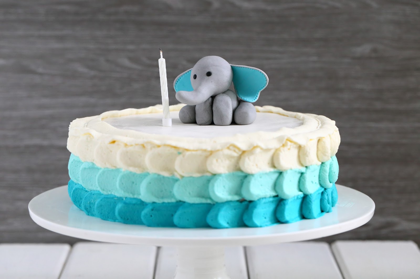 Ombre-pursotettu pojan 1-vuotiskakku n. 24 cm vuokaan