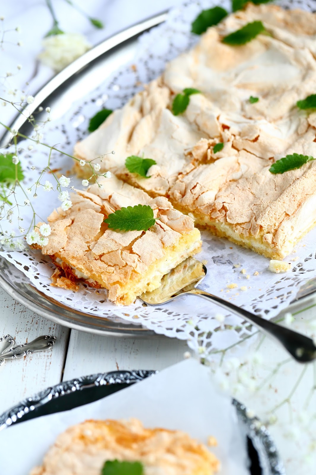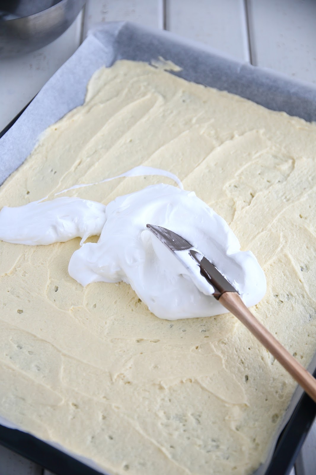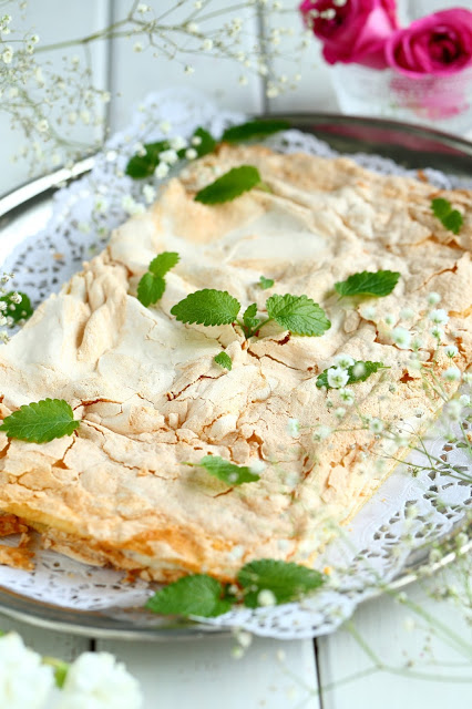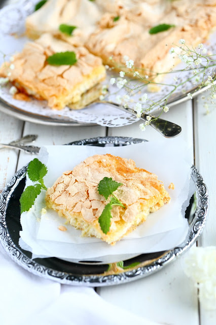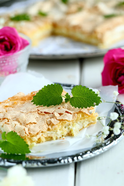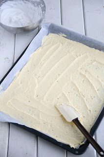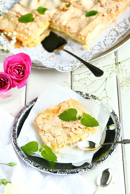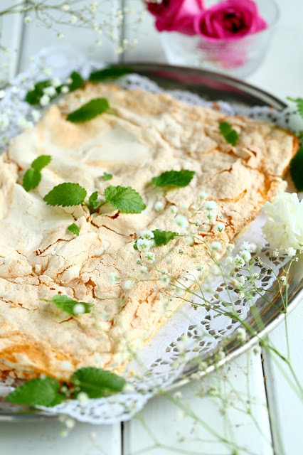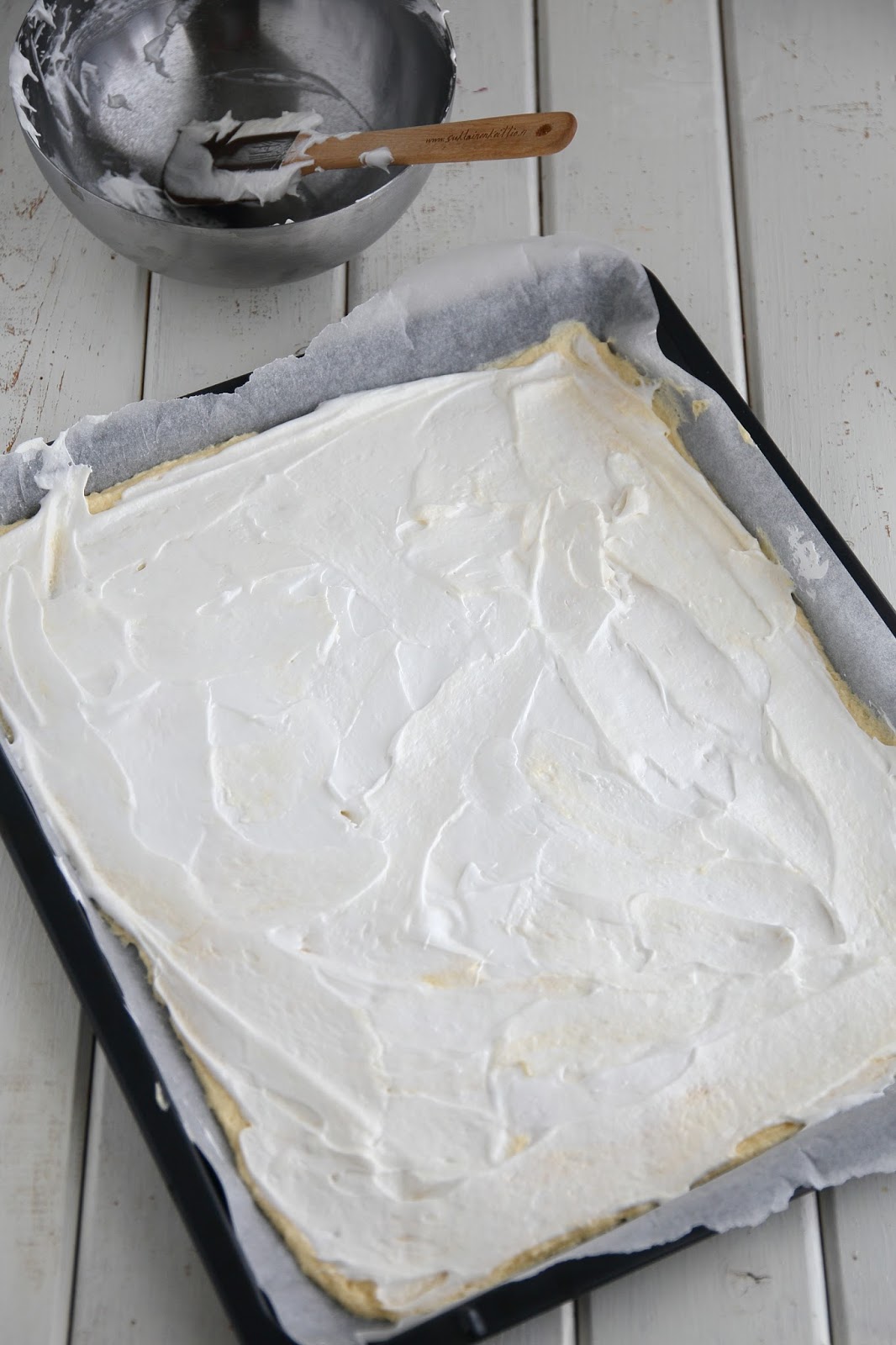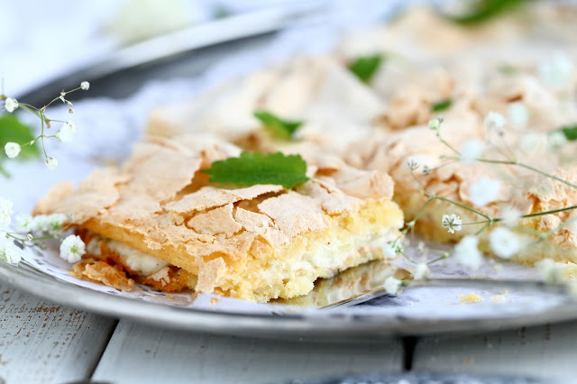 Testailin tällä kertaa britan tekemistä hieman eri ohjeilla, mitä aiemmin. Tähän versioon tuli vähemmän valkuaisia, joten myös päällä oleva marenkikerros oli ohuempi. Marenkikerroksen levittäminen olikin melko tosi hankalaa ja alla oleva pohjataikina meinasi sekoittua marenkiin hieman liikaa. Aiempiin mango-passion-britakakkuun ja mansikkaiseen britakakkuun olen laittanut enemmän valkuaisia, jolloin marenkikerros on myös ollut paksumpi ja helpommin levitettävissä. Makuun tuo valkuaisten määrä ei kuitenkaan pahemmin vaikuttanut, mutta paksuuteen kyllä. Brita-kakun pohjaosasta tuli tällä ohjeella melko ohut. Toisaalta, eihän sen paksu tarvitsekaan olla. Tämä oli oikein suussasulavaa, makeaa herkkua.