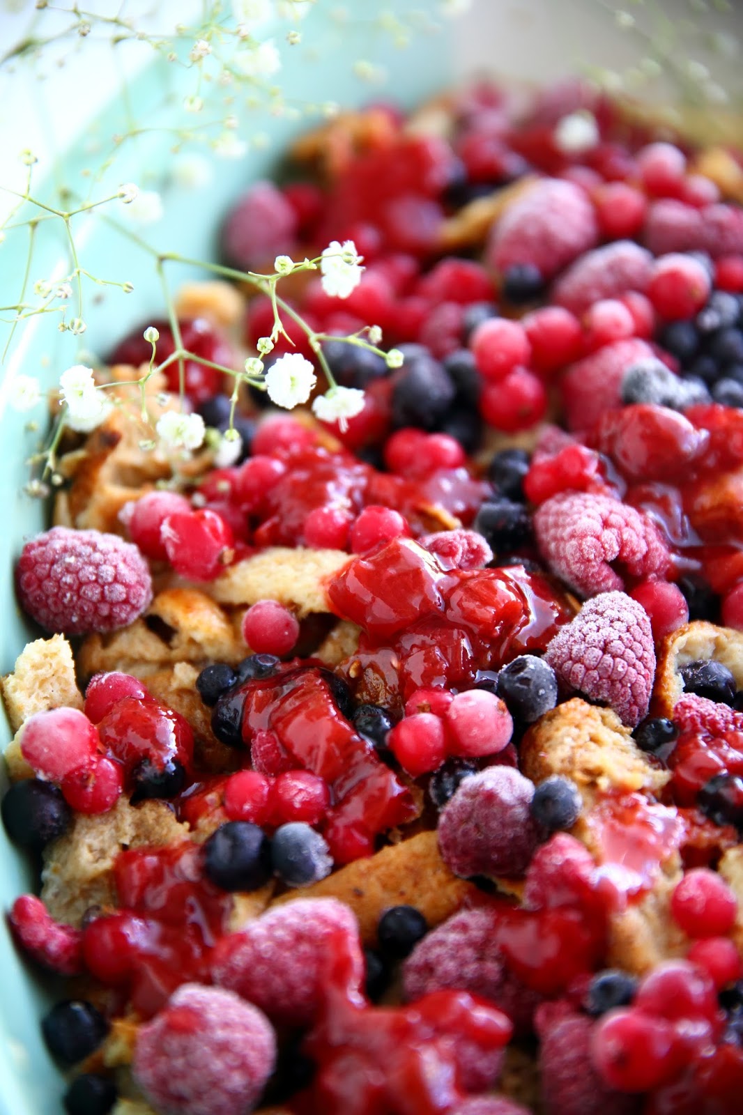 marjoja (laitoin mustikoita, vadelmia, punaherukoita)