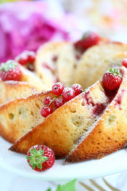 Tähän kakkuun hukattiin siis vain mansikoita ja raparpereita. Punaherukat ja vadelmat syötiin sellaisenaan, mutta uskoisin, että nekin olisivat sopineet tähän oikein mainiosti 🙂