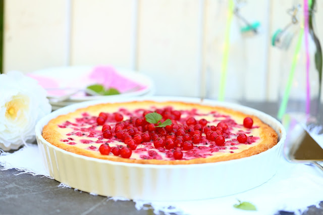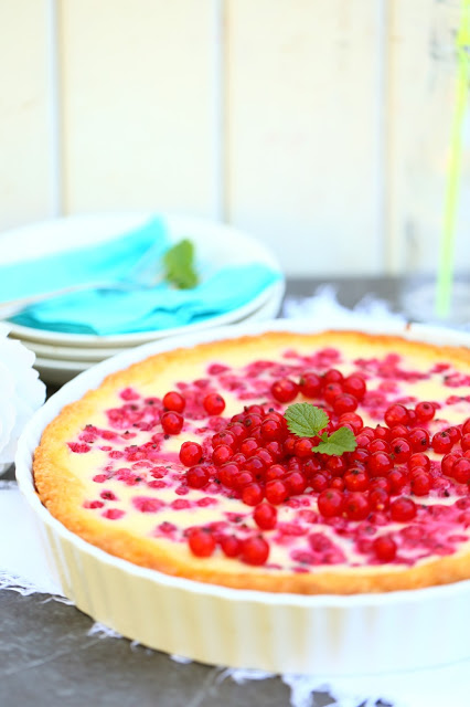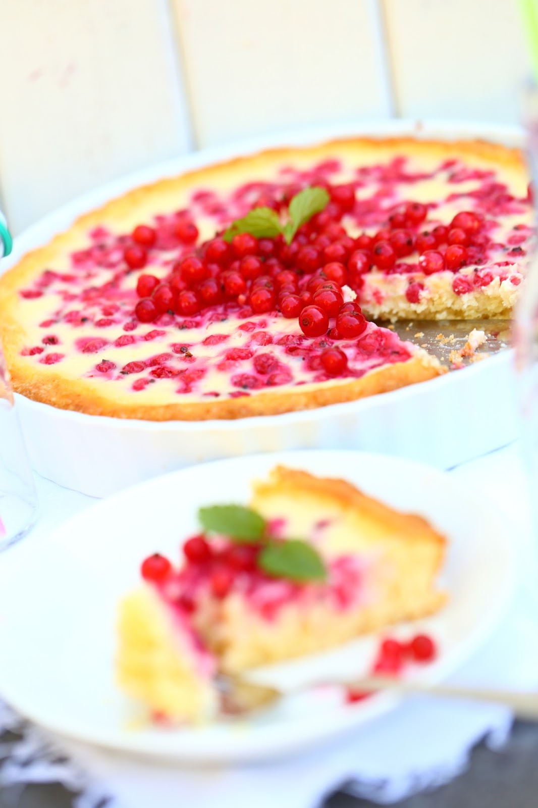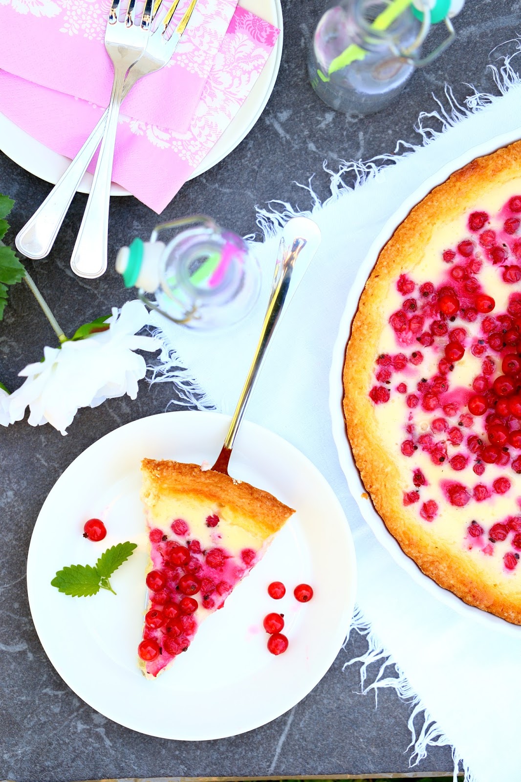 Heinäkuussa tekemästäni Pikaisesta mansikkakakusta jäi reilusti kreikkalaista jogurttia yli ja sehän piti saada upotettua johonkin. Huomasin, että punaherukat olivat sopivasti kypsiä, joten ei muuta kuin toimeen. Loppujogurtti hukkui siis tähän herkulliseen, makean kirpeään punaherukka-piirakkaan, jossa sekä pohja että täyte sisältää jogurttia. Piirakka on myös helppo ja nopea tehdä, sillä sen tekemiseen ei tarvita vatkaimia, vaan aineet vain sekoitetaan keskenään. Piirakasta tuli niin hyvää, etten keksinyt mitään parannettavaa, vaikka kuinka yritin!