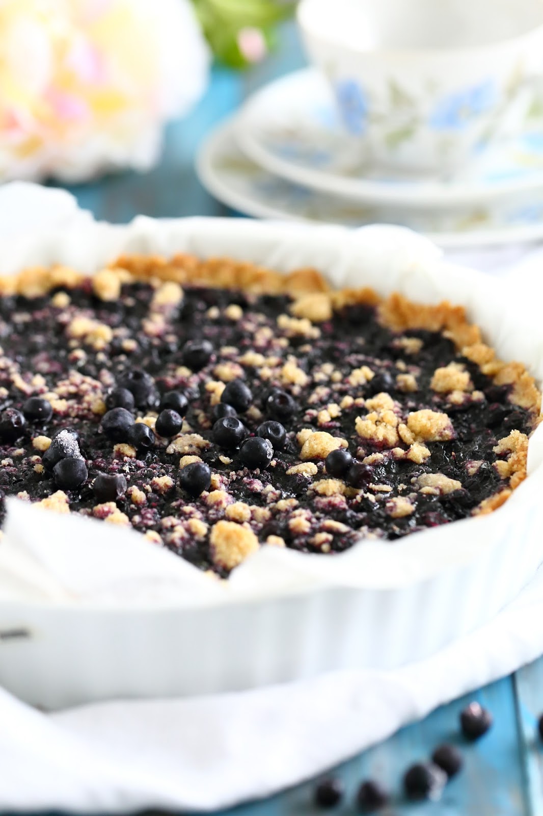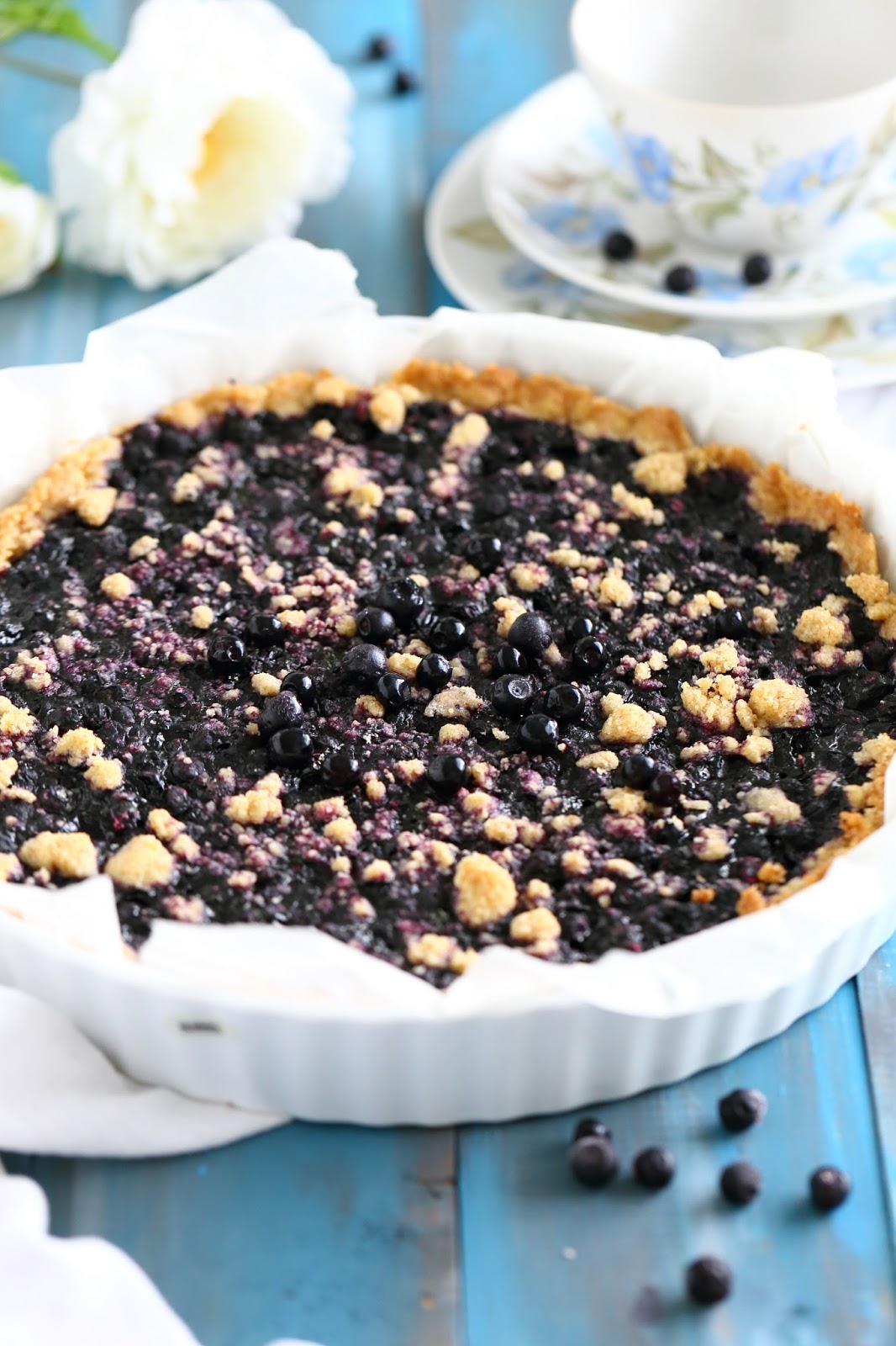 Ja ainiin, tein piirakan n. 26 cm vuokaan. Pohjasta tuli toooodella ohut ja päällä oli melko vähän tuota rapeaa muruseosta, joten ehkä parempi vuoan koko olisi n. 24 cm. Merkkaankin tämän suoraan ohjeeseen. Ja tässä se älyttömän hyvän ja mahdottoman helpon mustikkapiirakan ohje vihdoin tulee.