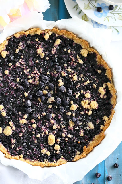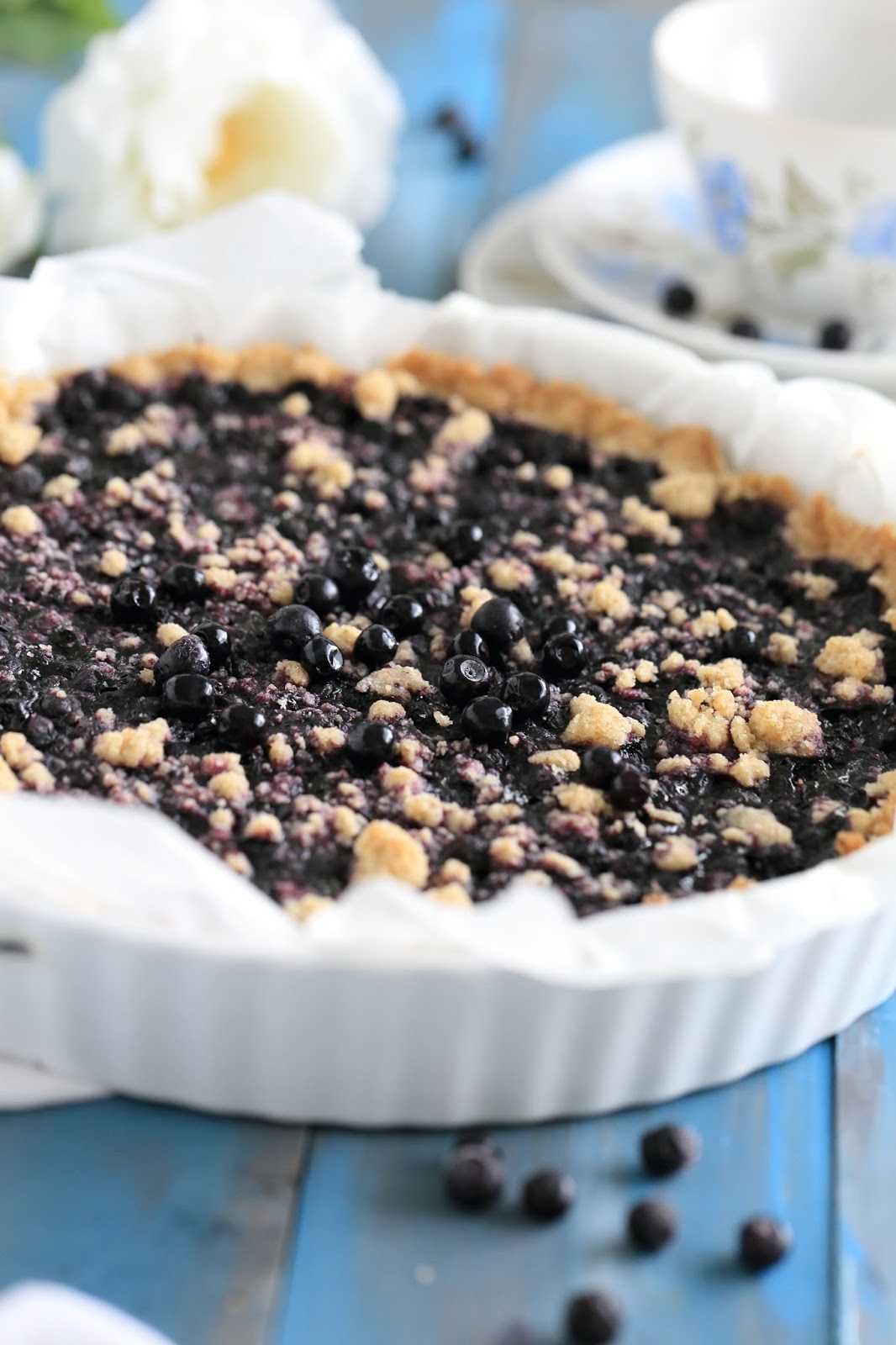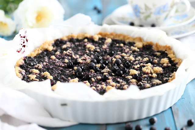 * Laitoin piirakkaan pakastemustikoita tuoreiden puuttuessa. Piirakan voi hyvin tehdä myös tuoreista mustikoista, mutta tällöin perunajauhot voi jättää pois tai laittaa niitä hieman vähemmän.
