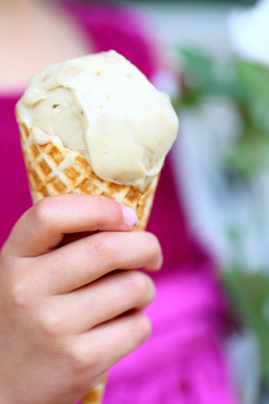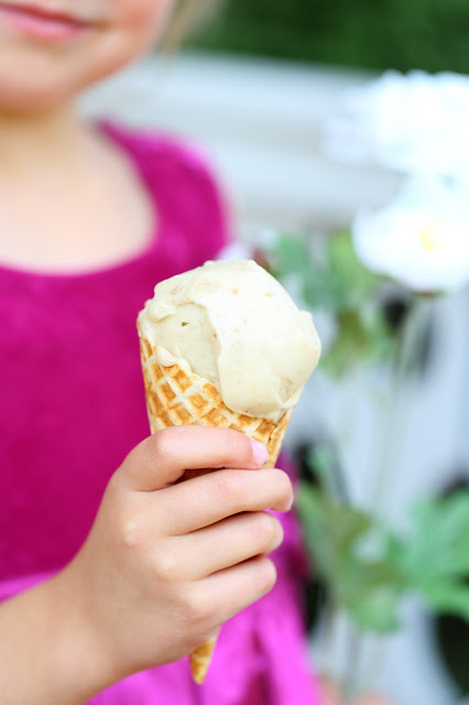 Olin jutellut meidän vanhimmalle tytölle (8v) jo varmaan parisen vuotta sitten jäätelöstä, jonka saisi tehtyä vain banaanista. Itse en moista jäätelö ollut koskaan tehnyt, mutta netissä liikkui tuolloin paljon noita älyttömän helppoja jäätelöohjeita ja mainitsin asiat tytölle ohimennen. Hänelle oli jäänyt mieleen tuo helppo ohje ja yhtäkkiä yllättäen nyt elokuussa pienissä jäätelönhimossaan hän päätti tehdä sitä.