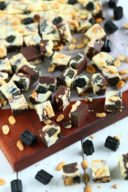 Helppo kahden suklaan suklaafudge lakritsilla ja pähkinöillä (Nami, nämä eivät petä koskaan!):