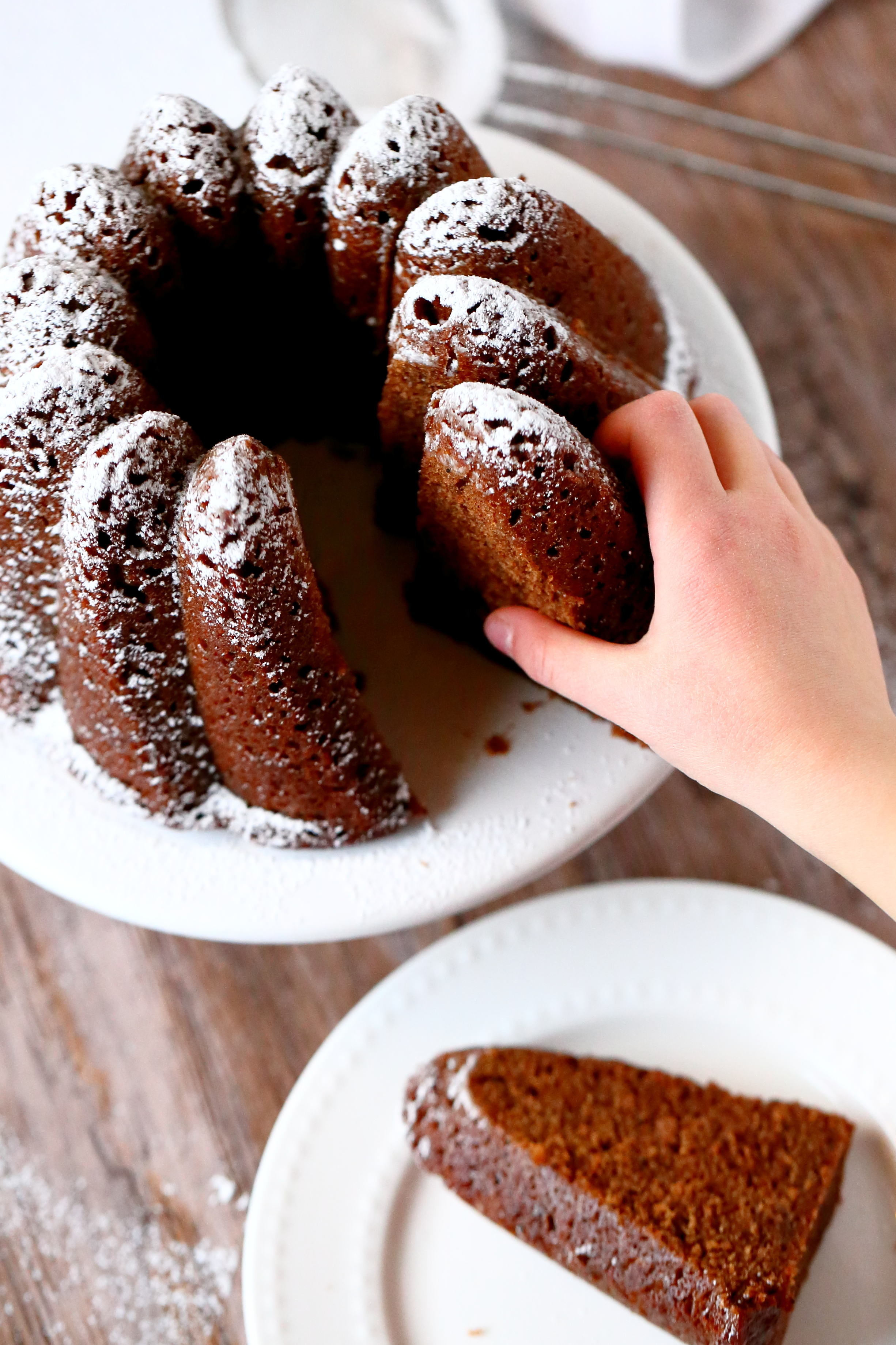 Käytin kakkuun isoa silikonista kahvikakkuvuokaani ja luulin tämän ison taikinan tuovan esille sen kauneuden. Vuoka oli kuitenkin hieman liian suuri (tai pikemminkin taikina liian pieni), etten saanut vuoan yläreunassa olevaa kuviota näkyviin kakun alaosaan lainkaan. Jospa ensi kerralla sitten vieläkin isommalla taikinalla…