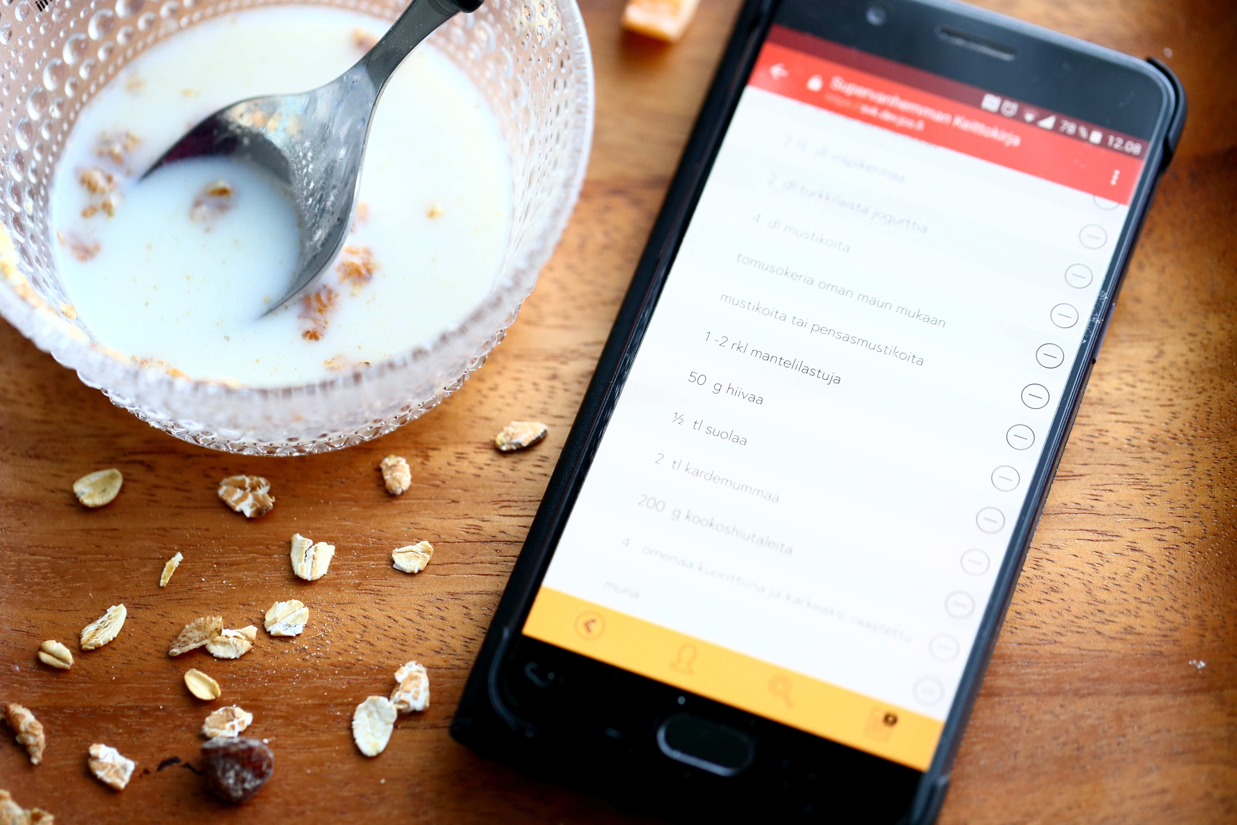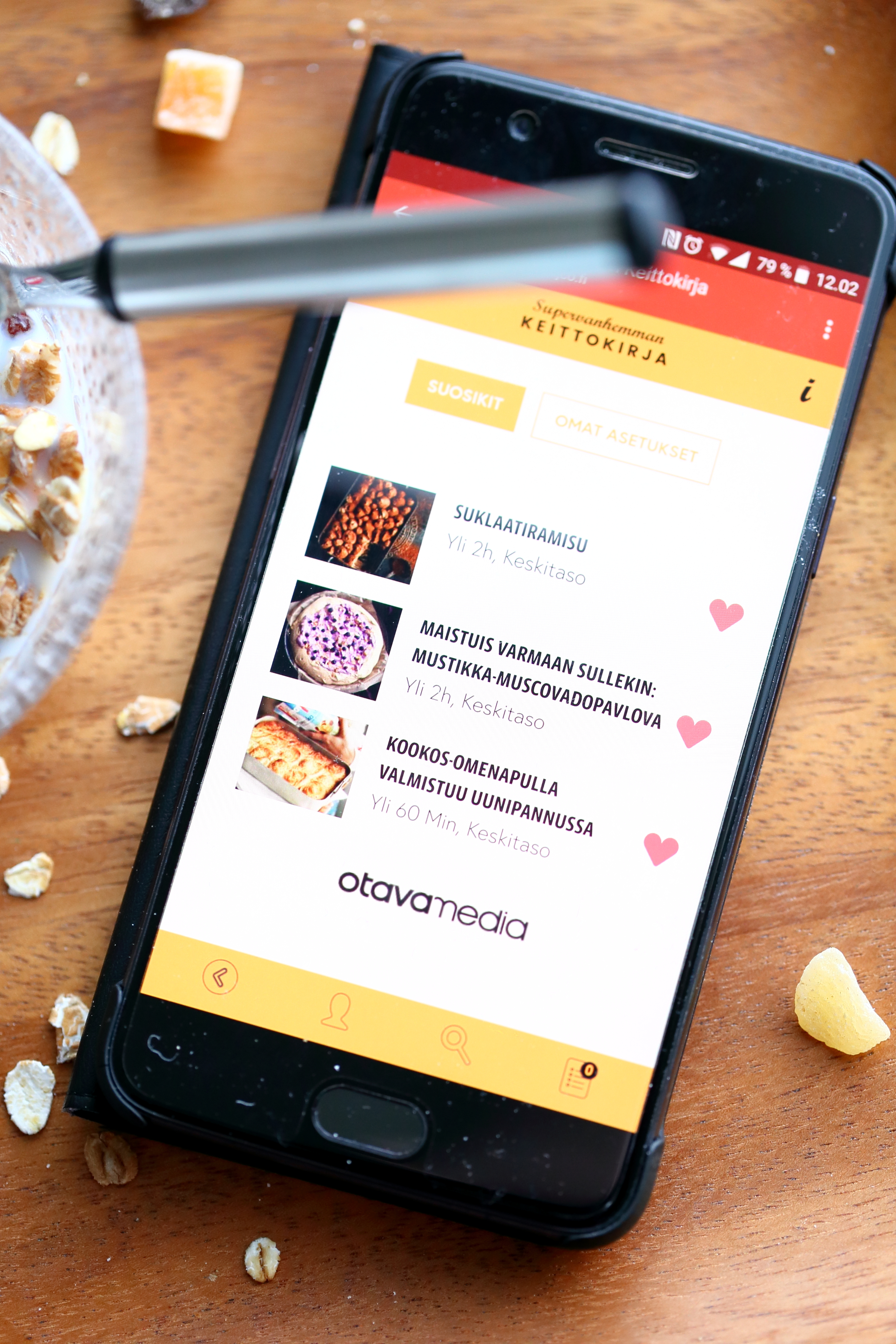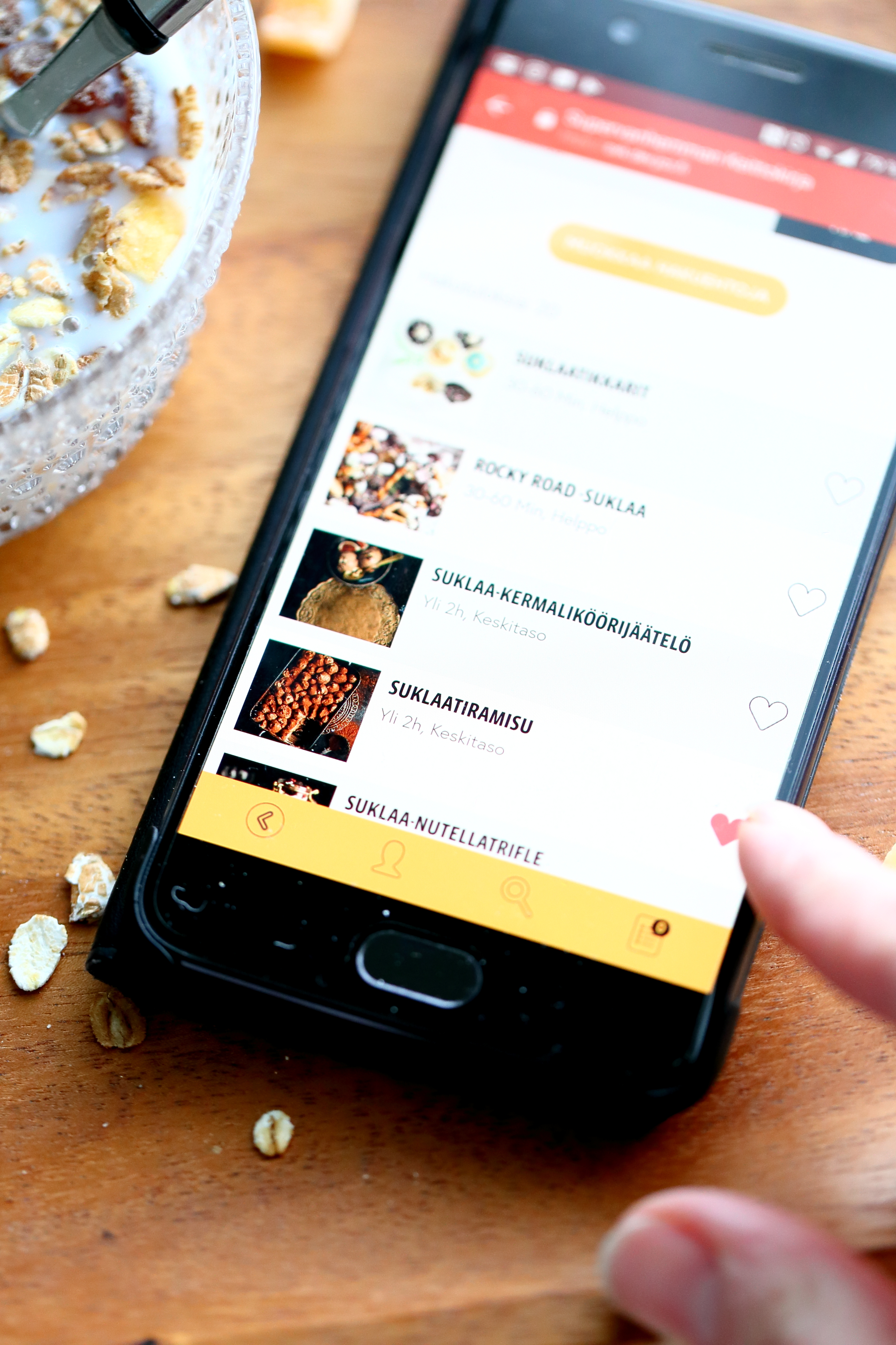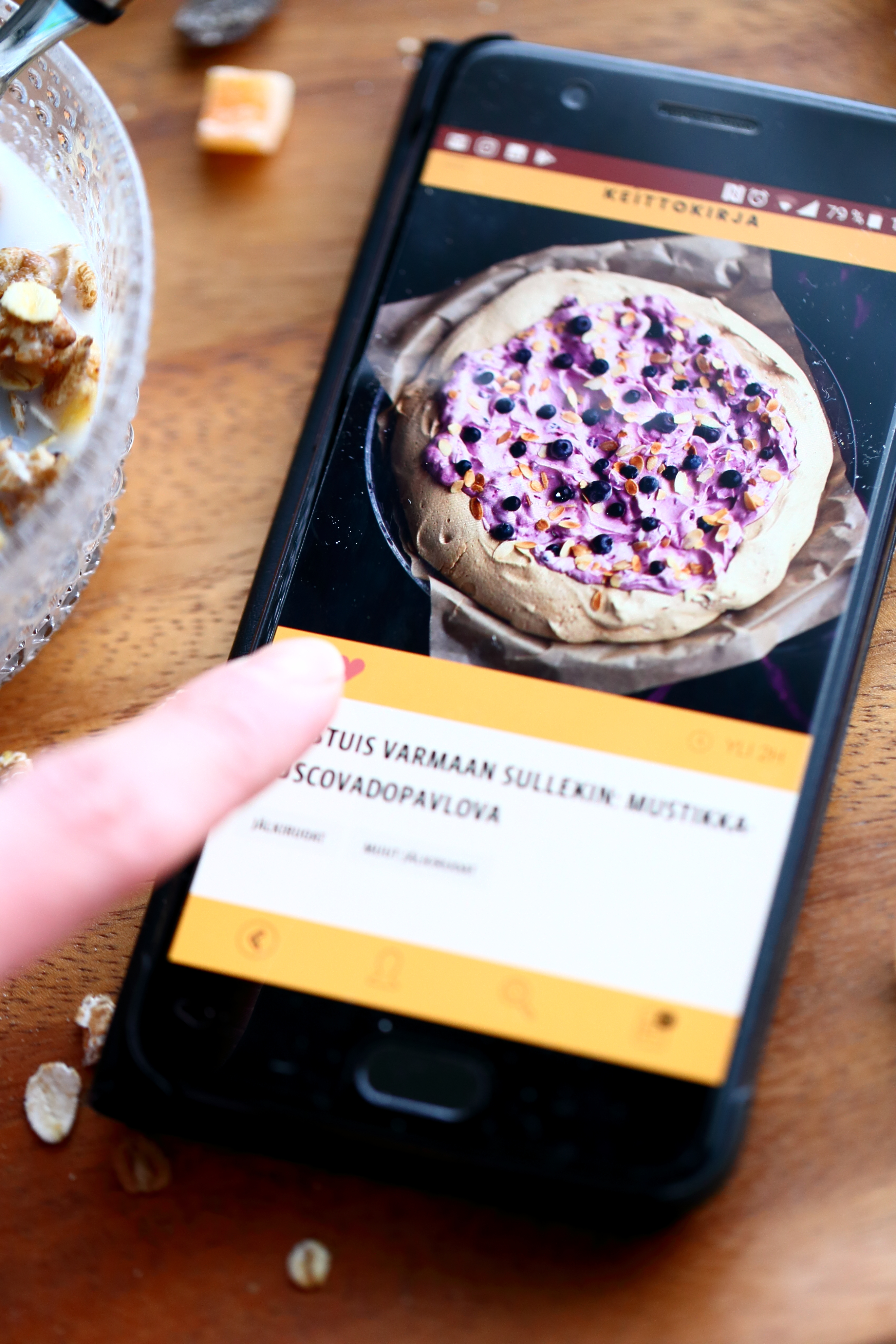 Kampean itseni sohvalta ylös ja köpöttelen keittiöön. Istun pöydän ääreen, kaivan pienen kulhon esille ja kaadan siihen välipalaksi hieman mysliä ja maitoa. Asetan kännykän kulhon viereen, avaan keittokirjasovelluksen ja eikun katsomaan, mitä kaikkea sieltä löytyy. Voitte varmaan arvata minkälaisia ohjeita suuntaan ensimmäisenä tarkastelemaan? Kyllä vain, syvennyn innolla leivonnaisten ja jälkiruokien maailmaan, ja poimin ohjeiden joukosta omat 3 suosikkiani, jotka sopivat niin viikonlopun ja arjen herkutteluhetkiin kuin juhliinkin, yhdessä tai erikseen.