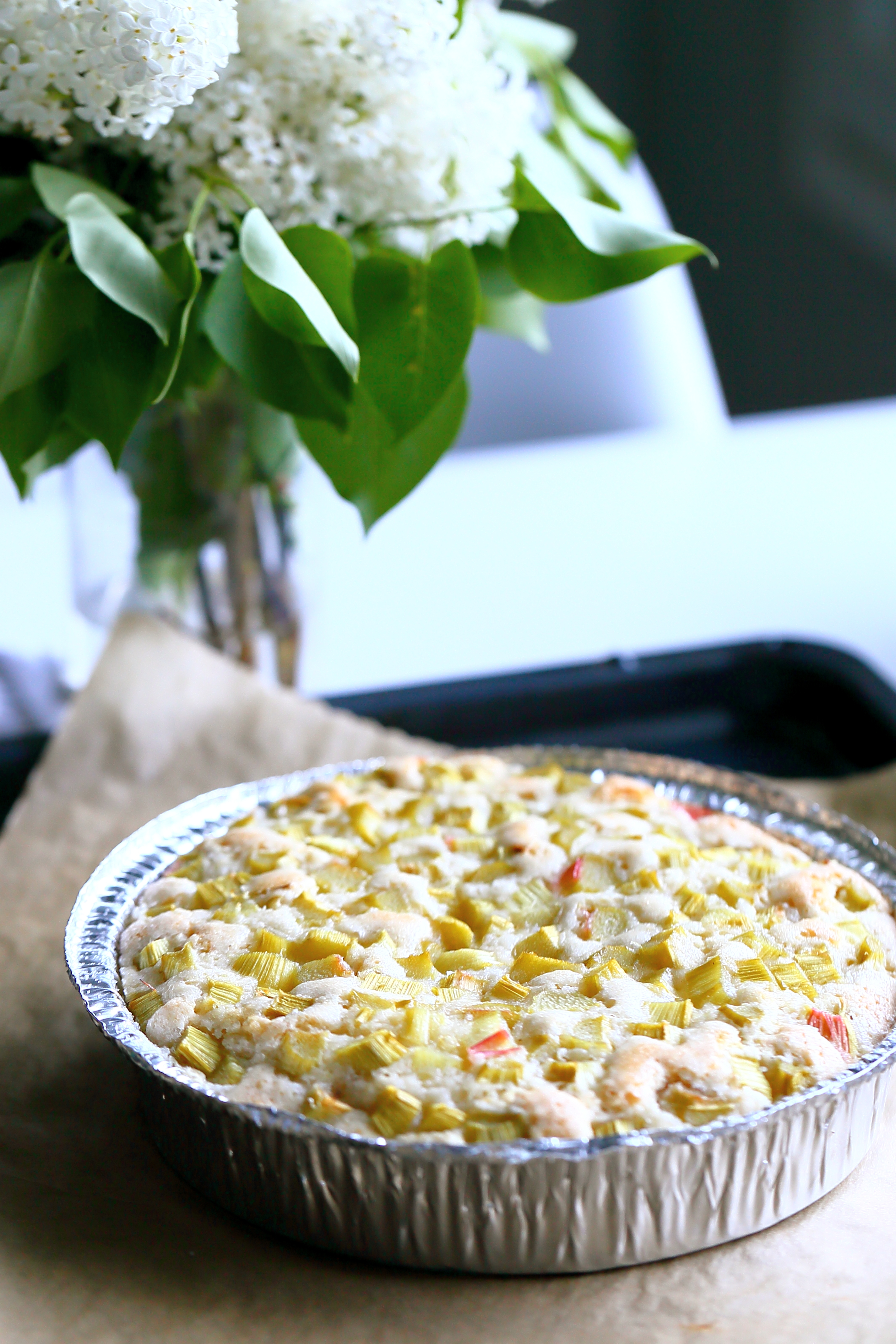Tämän vuoden tarha-aika on meidän perheessä ohi ja vein viimeisen päivä kunniaksi tarhatädeille kiitoksena kuluneesta vuodesta yksinkertaisen raparperipiirakan. Aikomukseni oli alunperin leipoa jotain aivan muuta, mutta kun edellisiltana vihdoin pääsimme iltapala-aikaan kotiin, en ehtinyt taikomaan seuraavaksi päiväksi mitään aikaa vievää. Päätin siis kaivaa nipun raparpereja esille ja tehdä helpon ja nopean piirakkataikinan. En tiennyt tarhatätien allergioista, joten tein piirakkataikinan tein hyvin samaan tyyliin kuin aiemmin Helpon ja mehevän raparperipiirakan, joka on munaton ja maidoton ja sopii siksi myös muutamille allergikoille. Tällä kertaa heitin vain taikinaan hieman enemmän sokeria ja piirakan päälle vähän vähemmän. Ja samalla nostin hitusen suolan määrää korostaakseni enemmän makuja.