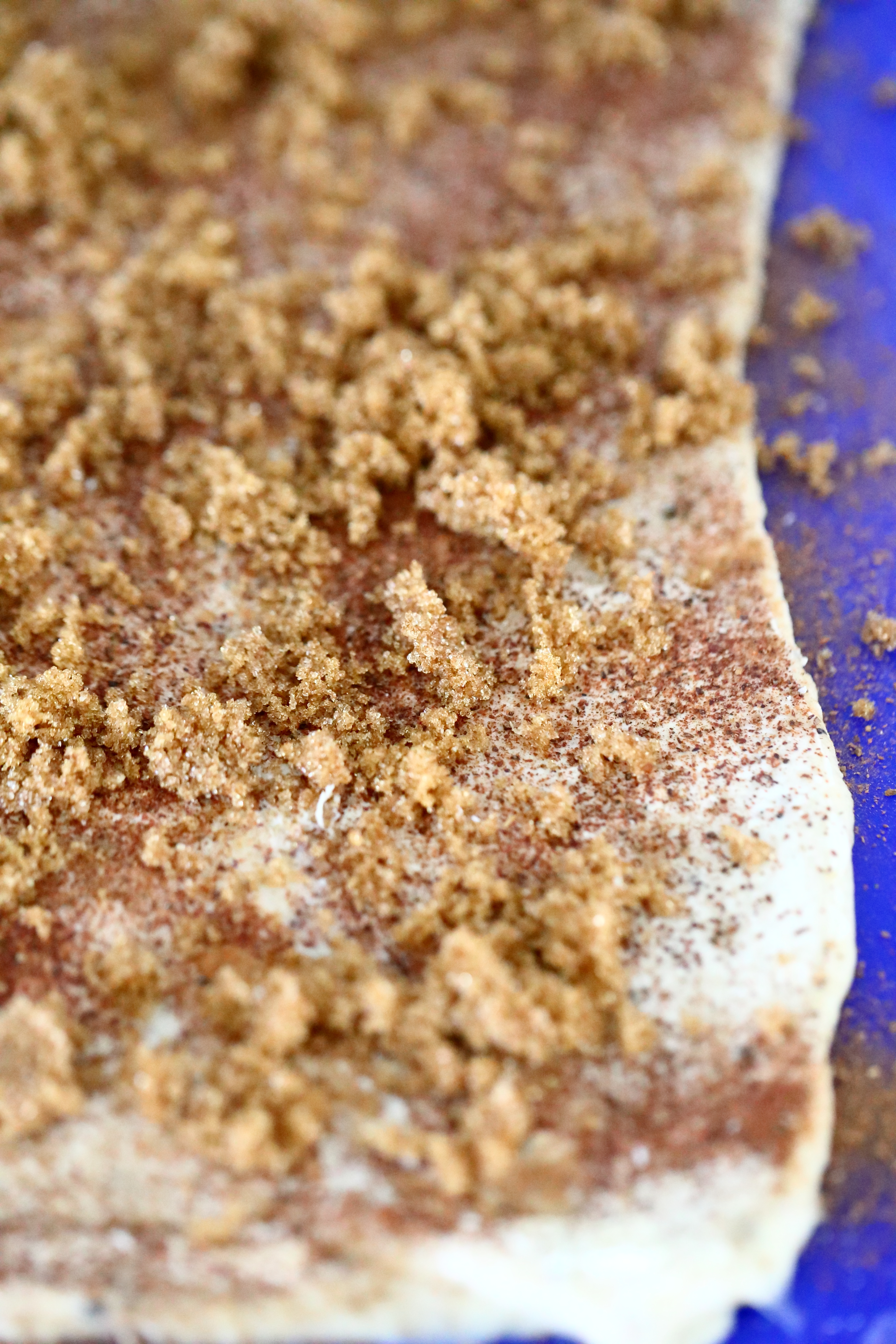 Rakastan vaniljasokerin makua, joten heitin tämänkin taikinan joukkoon vaniljasokeria. Sen voi kuitenkin halutessaan jättää laittamatta. Kanelipullissa paras osa on kanelitäyte, joten kierrepullien sisään laitoin reilusti kanelia. Toiselle puolelle levyä laitoin tavallista sokeria ja toiselle puolelle fariinisokeria. Voi jummi, kun fariinisokeritäytteisistä pullista tuli herkkua! Aivan ihania! Niitä olisin voinut mussuttaa enemmänkin.