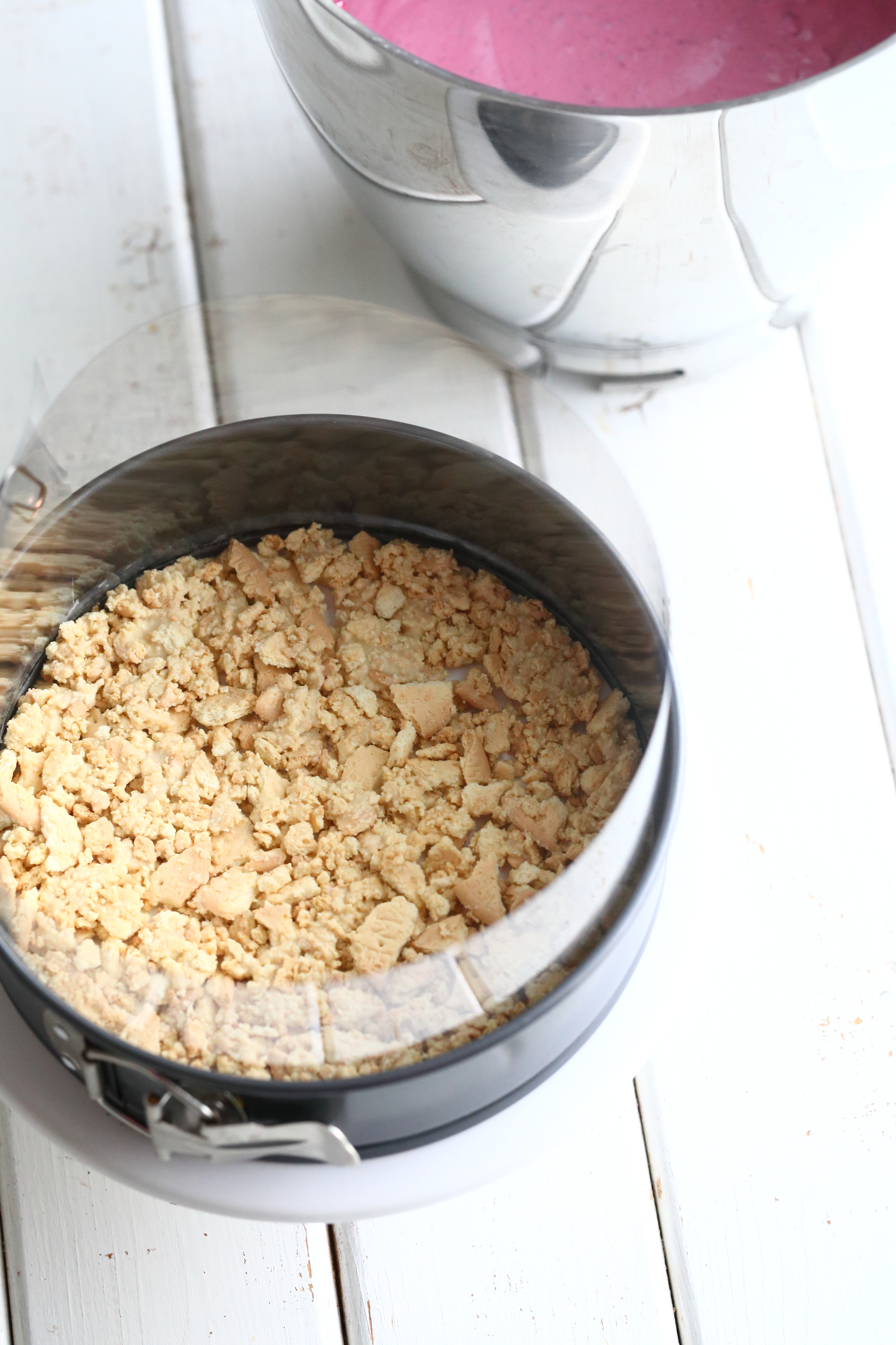 Tämä mustaherukka-mansikkakakku piristää syksyisen pimeyden keskellä ja tuo vielä pilkahduksen kesästä ja kesäisitä mauista mieleen. Kakun raikkaan värisen ja makuisen mustaherukka-mansikkamoussen alla on herkullinen Marie-keksi + valkosuklaa -kerros ja päällä kerros valkosuklaaganachea.
