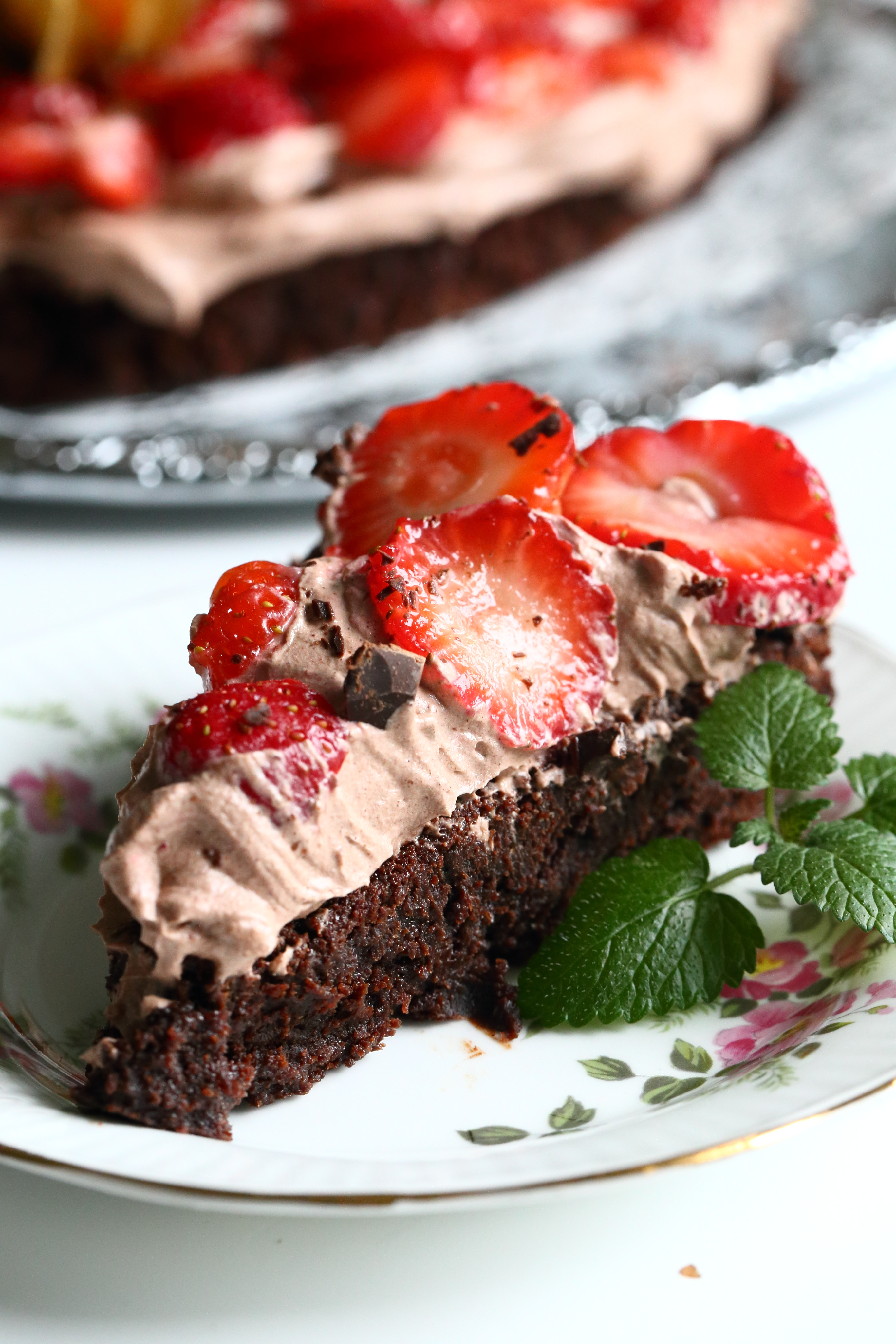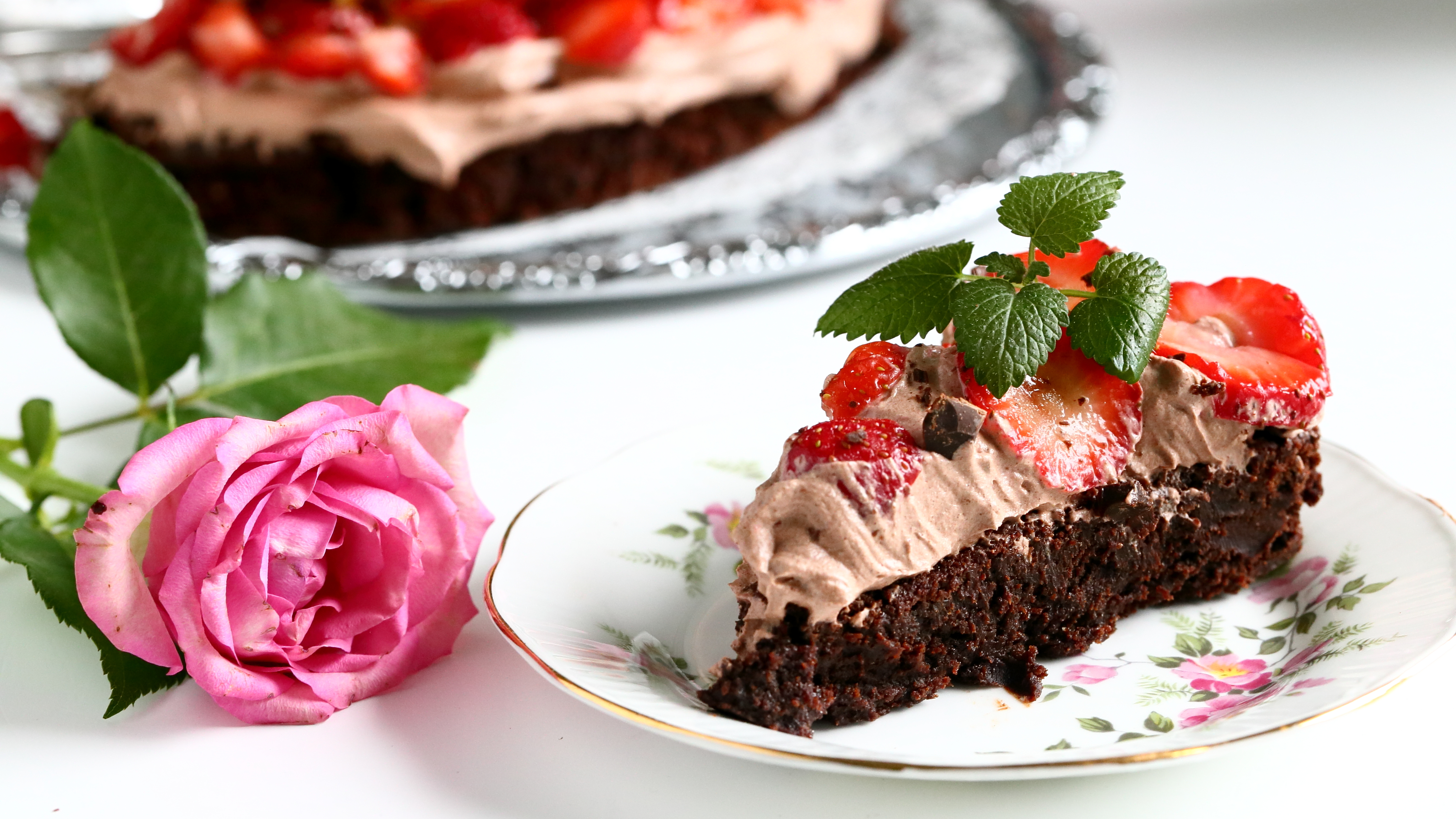 Mutakakku kaakaokermalla ja mansikoilla