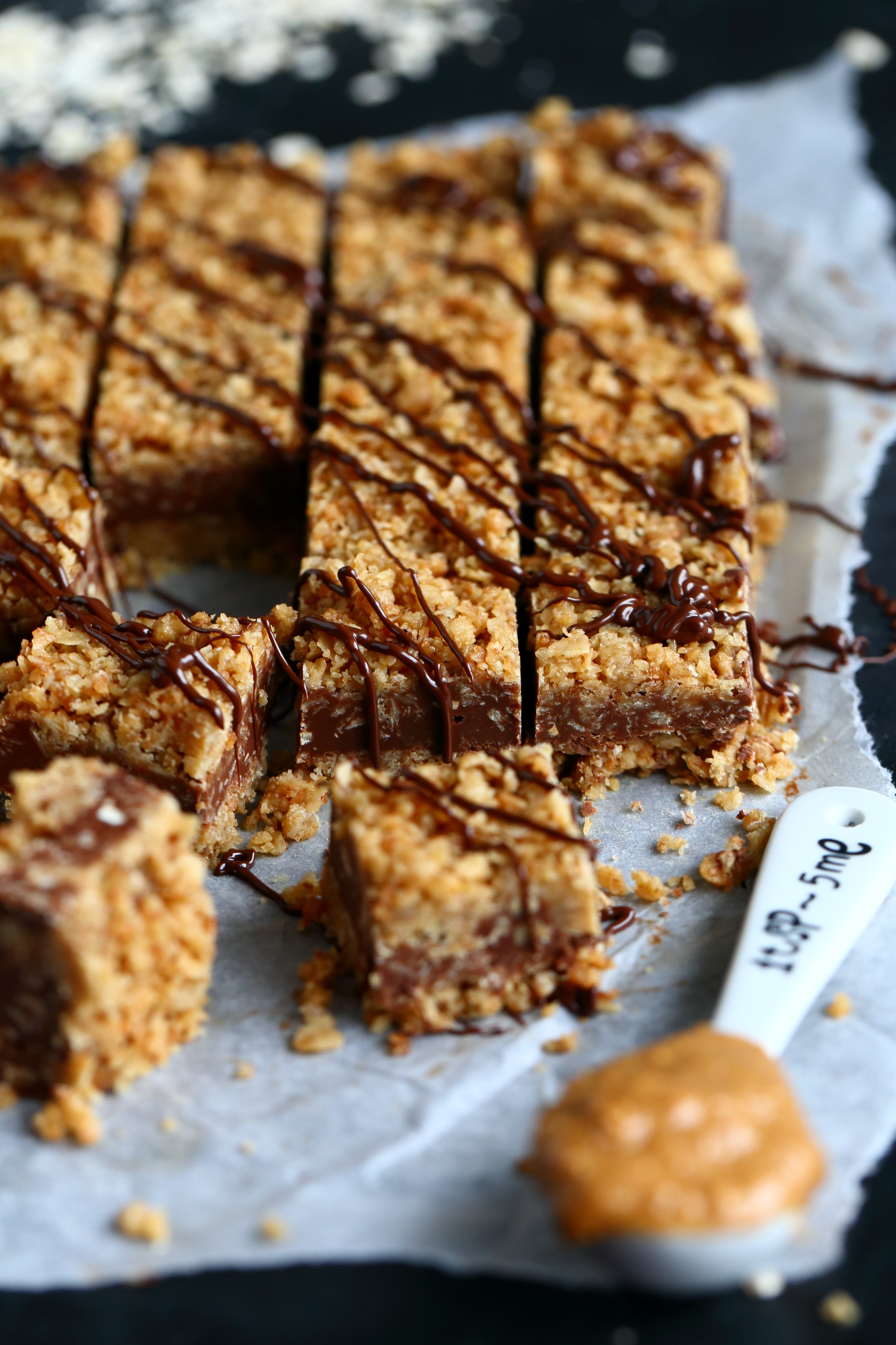 Ihan älyttömän hyviä! Ihania! Herkullisia! Suussasulavia! Oi mikä rapsakkuus ja suklaan pehmeys! Pakko ottaa toinen! Nämä huudot kaikuivat päässäni, kun maistelin näitä ilman uunia valmistuvia kaura-suklaakeksejä, jotka muistuttivat etäisesti Snickersin makumaailmaa. Helpon valmistustavan lisäksi keksin tekemiseen ei tarvita kuin kourallinen aineita eli parhaimmillaan vain 5 ainetta; suklaata, kaurahiutaleita, maapähkinävoita, fariinisokeria ja voita.