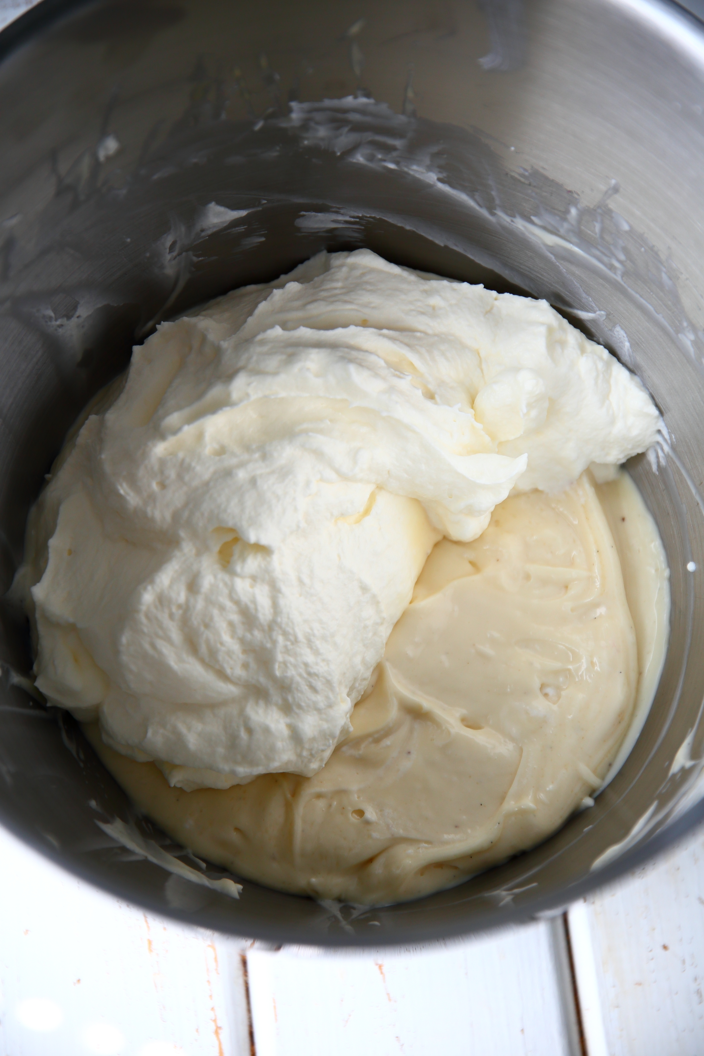 Vatkaa 3 dl vispikermaa vaahdoksi. Laita notkistetut tuorejuustot toiseen kulhoon ja vatkaa joukkoon kädenlämpöinen Omar-kastike ja vaniljasokeri. Lisää joukkoon myös kermavaahto.