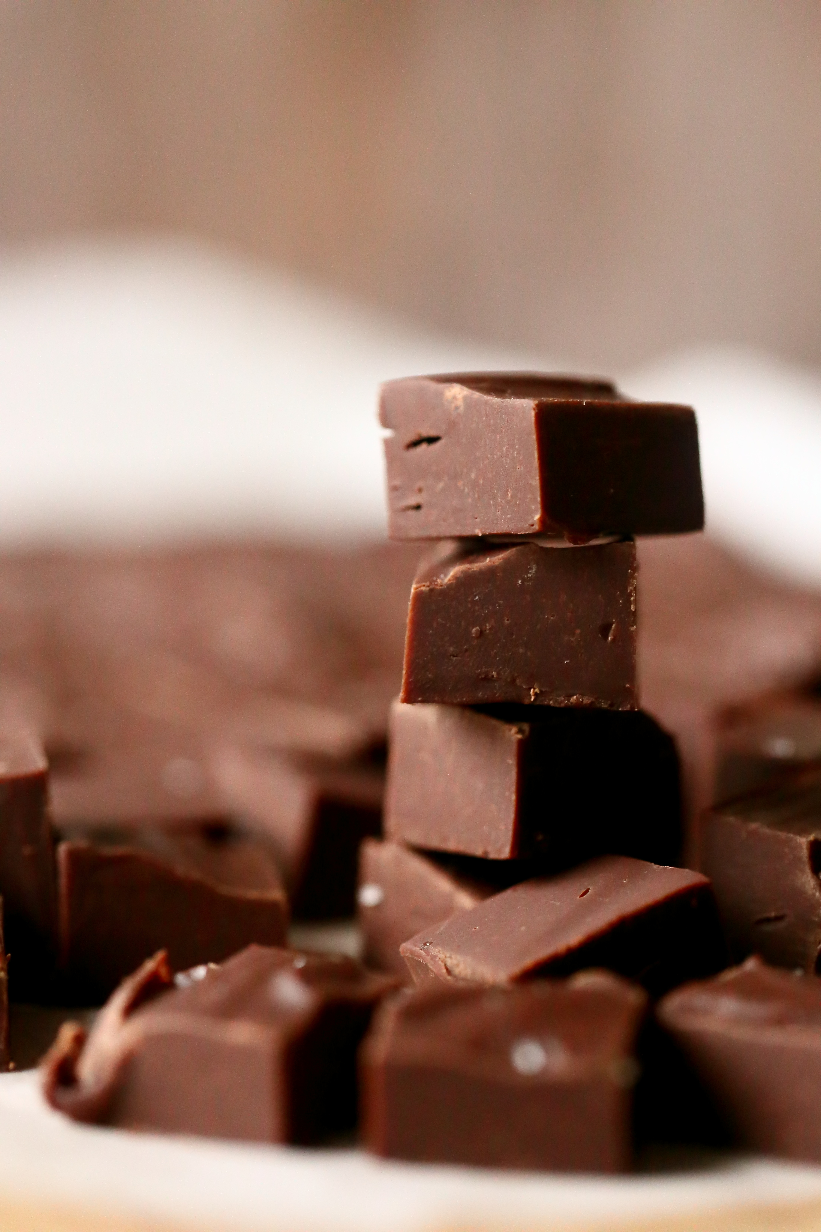 Tällaiset helpot, parhaimmillaan vain kahdesta aineesta valmistuvat suklaafudget ovat olleet jo vuosia lemppareitani, jos on ollut tarvetta pikkumakeille tarjottaville, syötäville lahjoille tai jos on vaikka tarvinnut tuhota ylimääräisiä suklaita. Viimeisimmälle ei tosin ole ollut tarvetta juurikaan, vaan suklaat ovat hävinneet yleensä kaapista aivan itsestään. Kerran tosin tuokin ihme on tapahtunut, kun olin ostanut kaupasta vääränlaista suklaata ja halusin päästä siitä kiukuspäissäni päästä eroon. Tosin silloiset suklaat eivät hukkuneet fudgeen vaan Vietävän hyvään After Eight-juustokakkuun. Kakusta tuli niin hyvä, että ajattelin samojen karkkien sopivan myös suklaafudgeen. Ja niinhän ne sopivatkin. Näistä tuli aivan ihania!