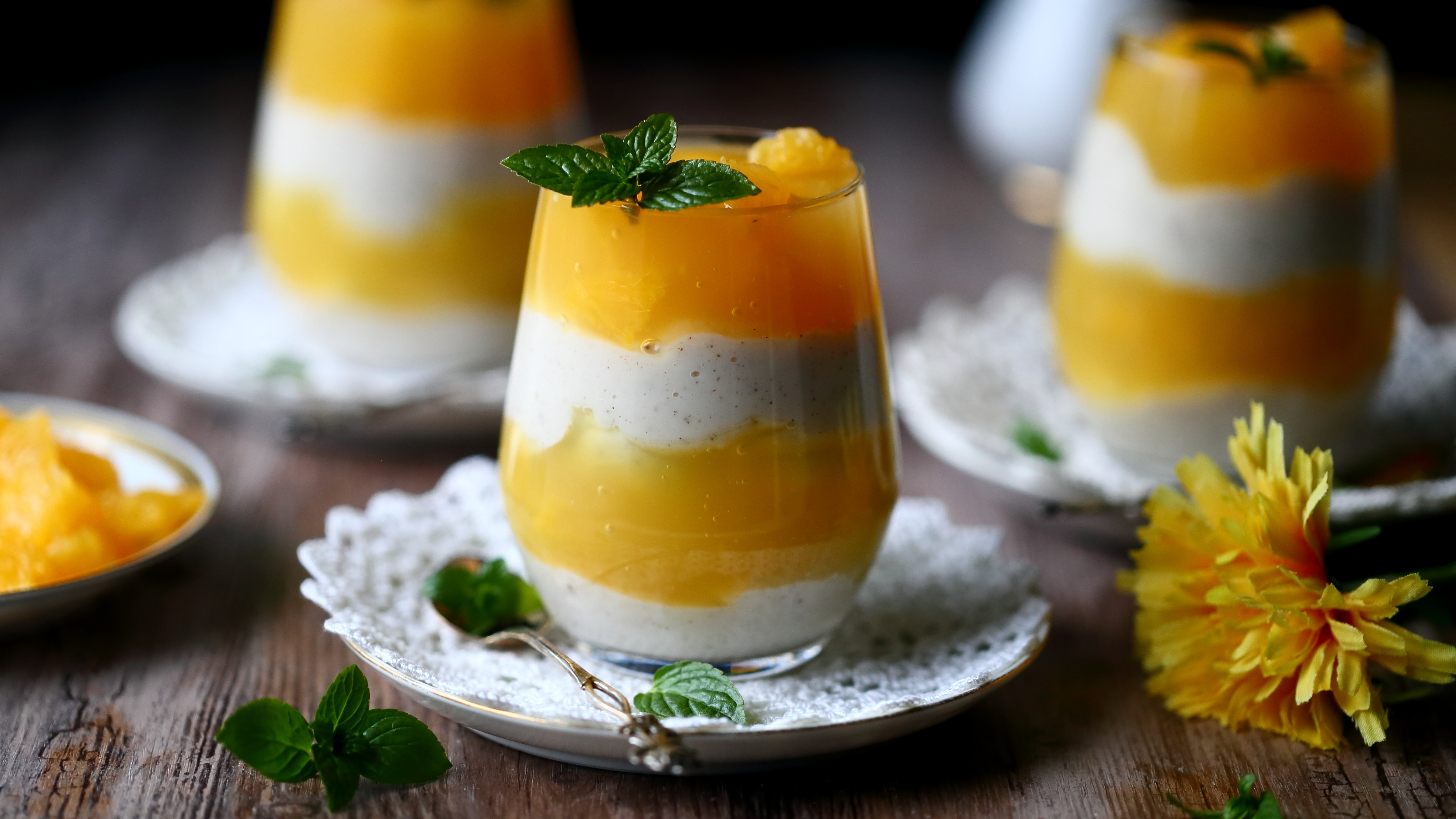 Kun appelsiinikiisseli on miltei kokonaan jäähtynyt, leikkaa appelsiinien hedelmäliha paloiksi ja lisää kiisselin joukkoon. Annostele kiisselit jälkiruokakulhoihin haluamassasi järjestyksessä. Laita valmiit annokset jääkaappiin jäähtymään ja tekeytymään 2 tunniksi.