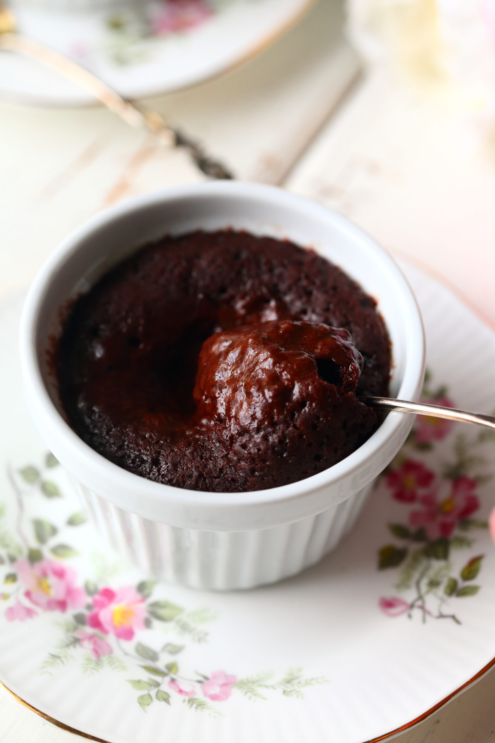 Laita kupit mikroon ja kypsennä täydellä teholla 60-90 sekuntia. Huomaa, että mikrot ovat tehoiltaan erilaisia, joten etsi mikrollesi sopiva aika. Mutakakku on valmis, kun se on kohonnut ja kiinteytynyt reunoilta, mutta keskeltä se on edelleen taikinamaista.