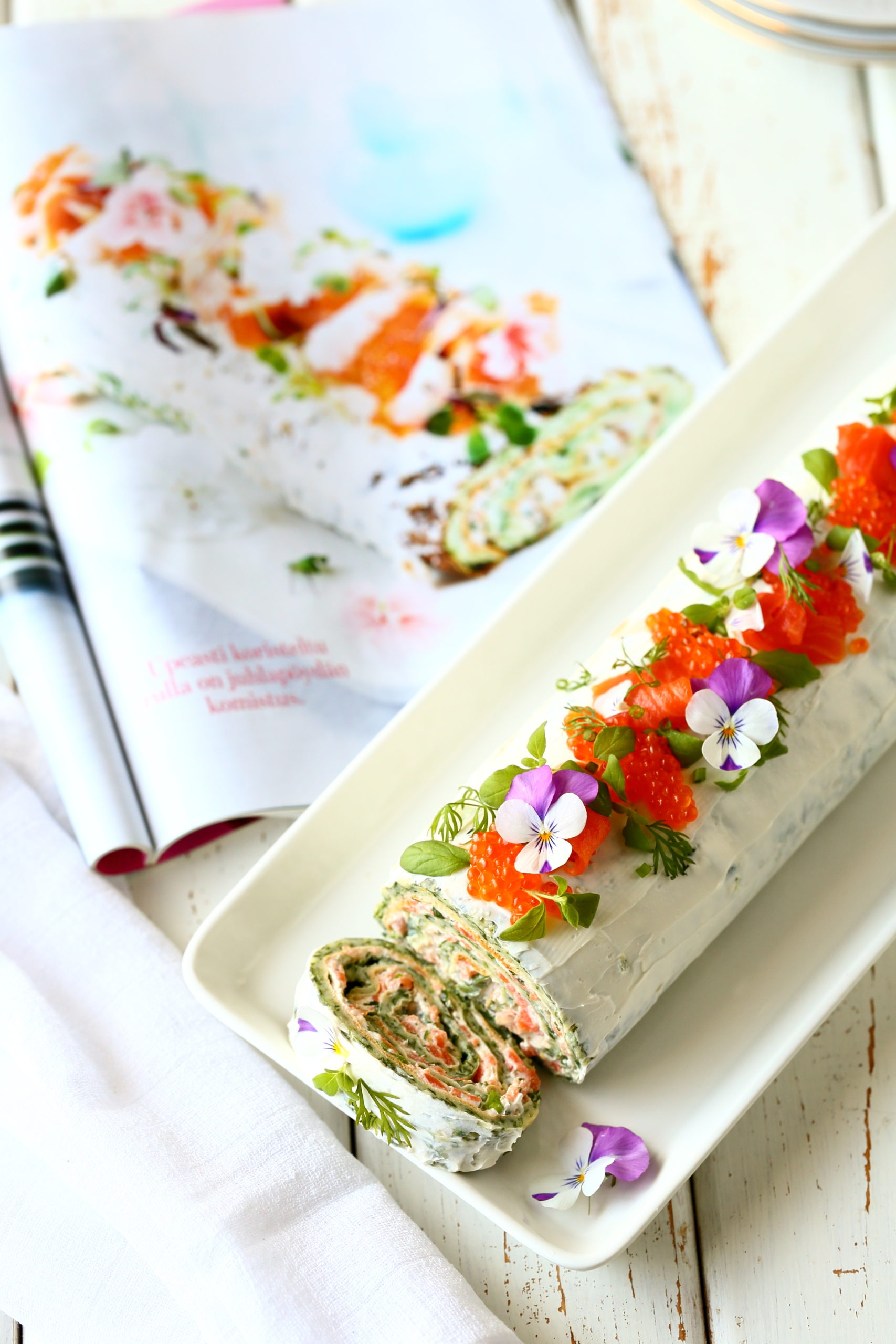 Kolmas ohje löytyi Kotilieden 26.4.2020 julkaistusta numerosta 9. kylmäsavulohi-munakasrulla lohitäytteellä. Lohi, erityisesti savulohi, on sellainen, mitä meillä syötäisiin vaikka joka päivä, jos vain antaisi lasten päättää. Sen takia kylmäsavulohitäytteinen helppo munakasrulla vaikutti ihanalta kokeilulta. Ja sellainen se olikin! Ihanan lohinen, pehmeä herkku, jonka jämät maistuivat juhlapäivän jälkeisellä myös aamupalalla ja lounaalla.