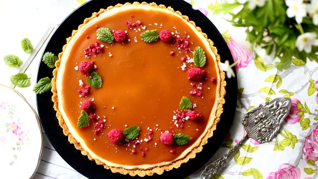 Salted caramel cheesecake -piirakka
