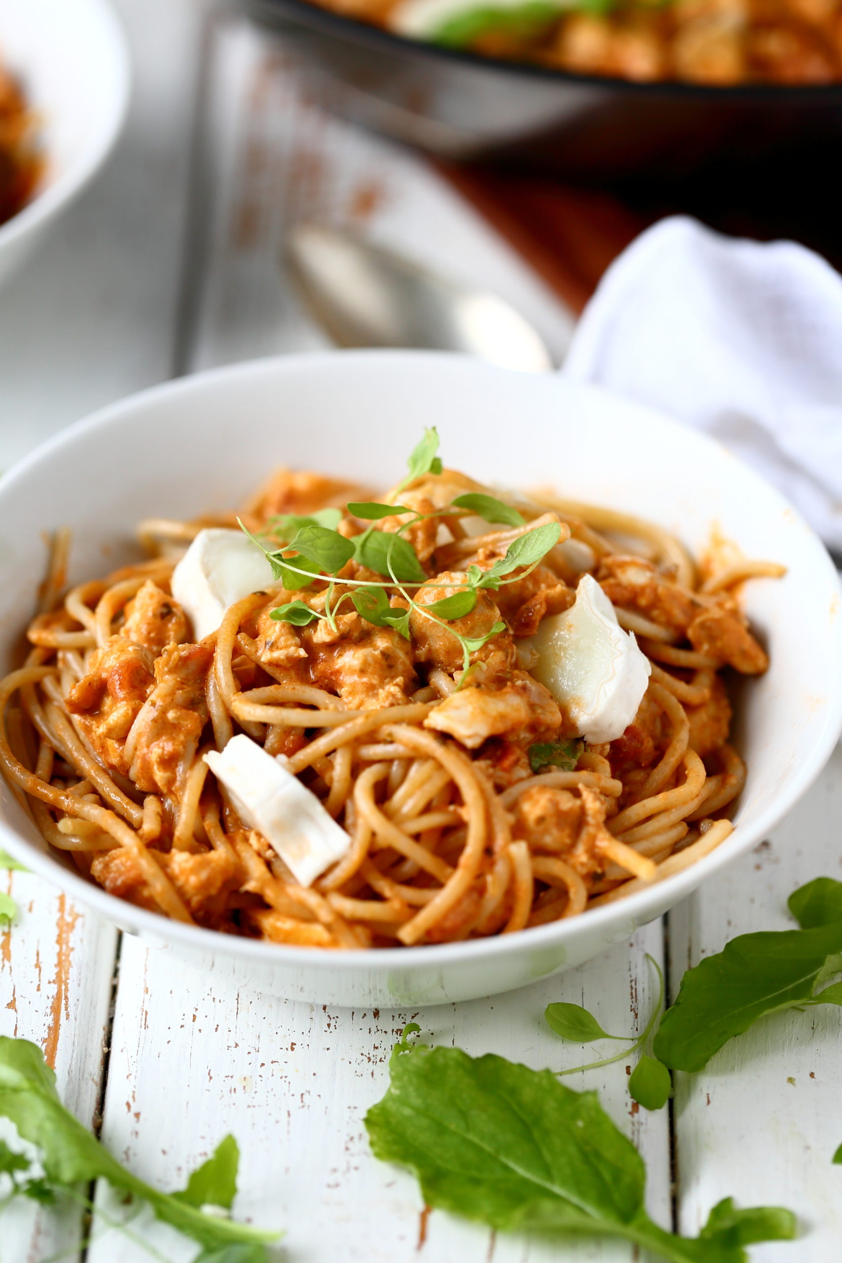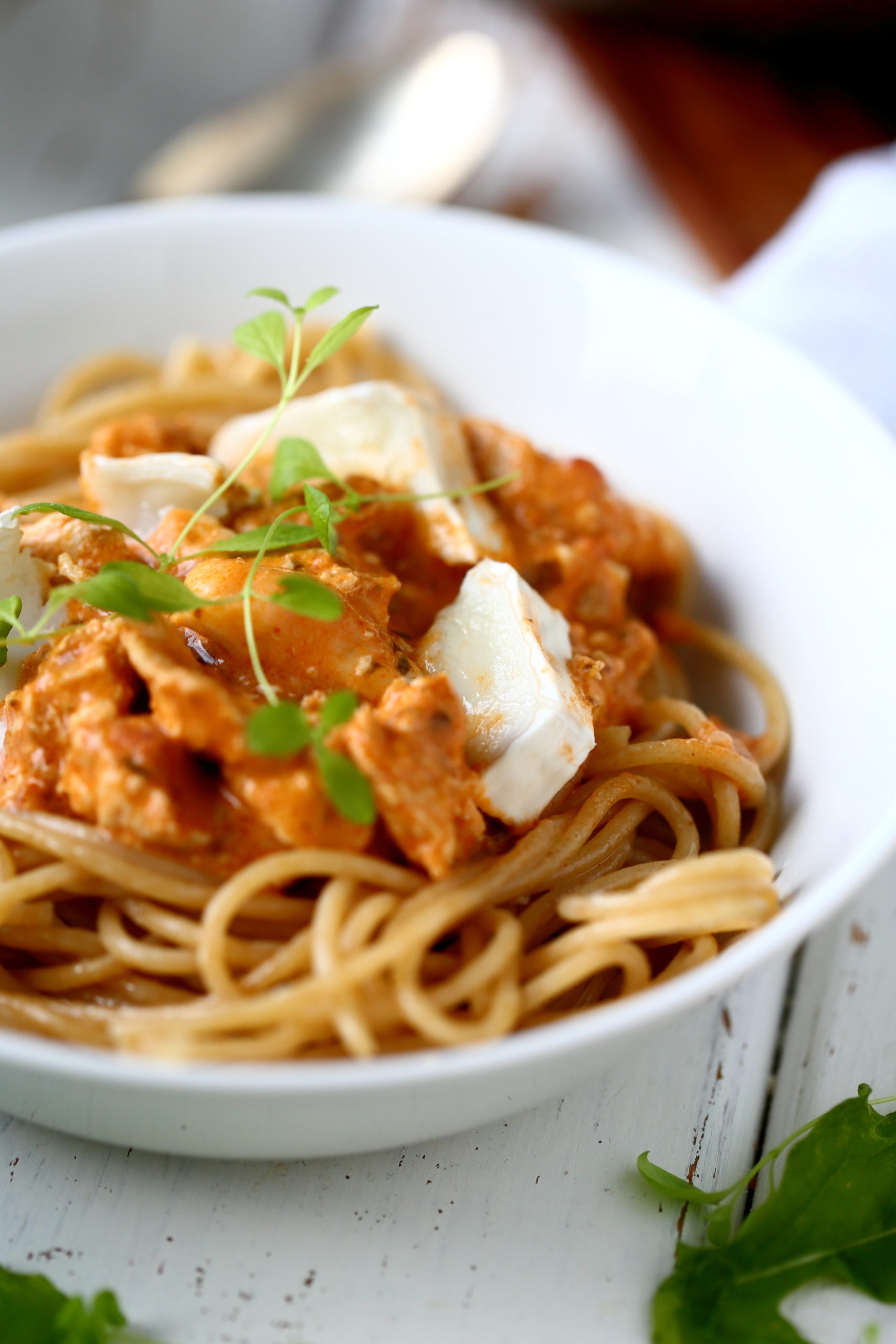 Erilaiset pastaruoat ovat olleet mein perheen suosiossa jo pitkään. Ne ovat helppoja ja niin nopeita, että ne valmistuvat samaan aikaan kuin spagetti kiehuu! Tämä broileri-vuohenjuusto-pesto-pasta ei tee tähän poikkeusta, vaan kastike valmistuu samalla, kun pasta kypsyy eli muutamassa minuutissa. Todellista ”pikaruokaa” siis, mutta niiiin hyvää. !
