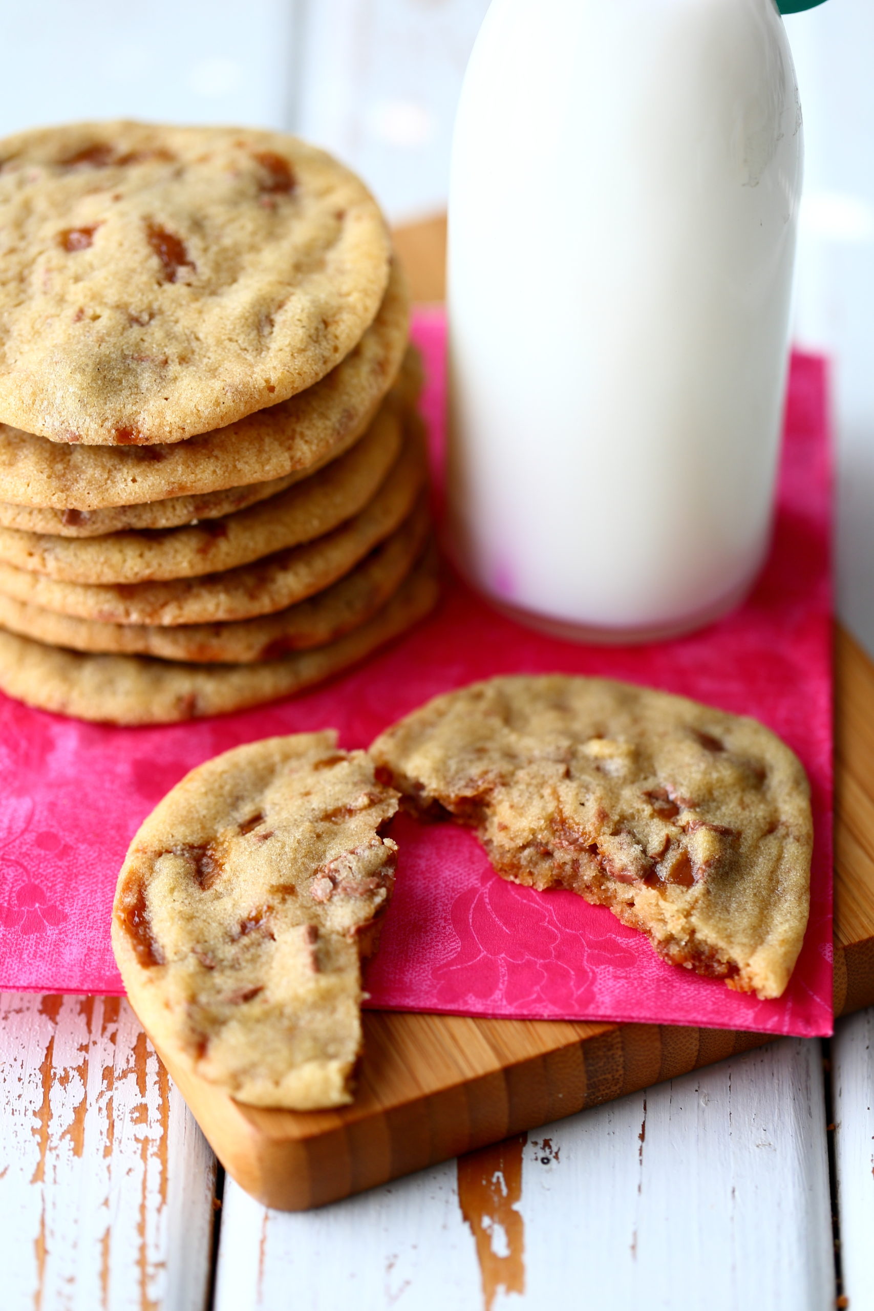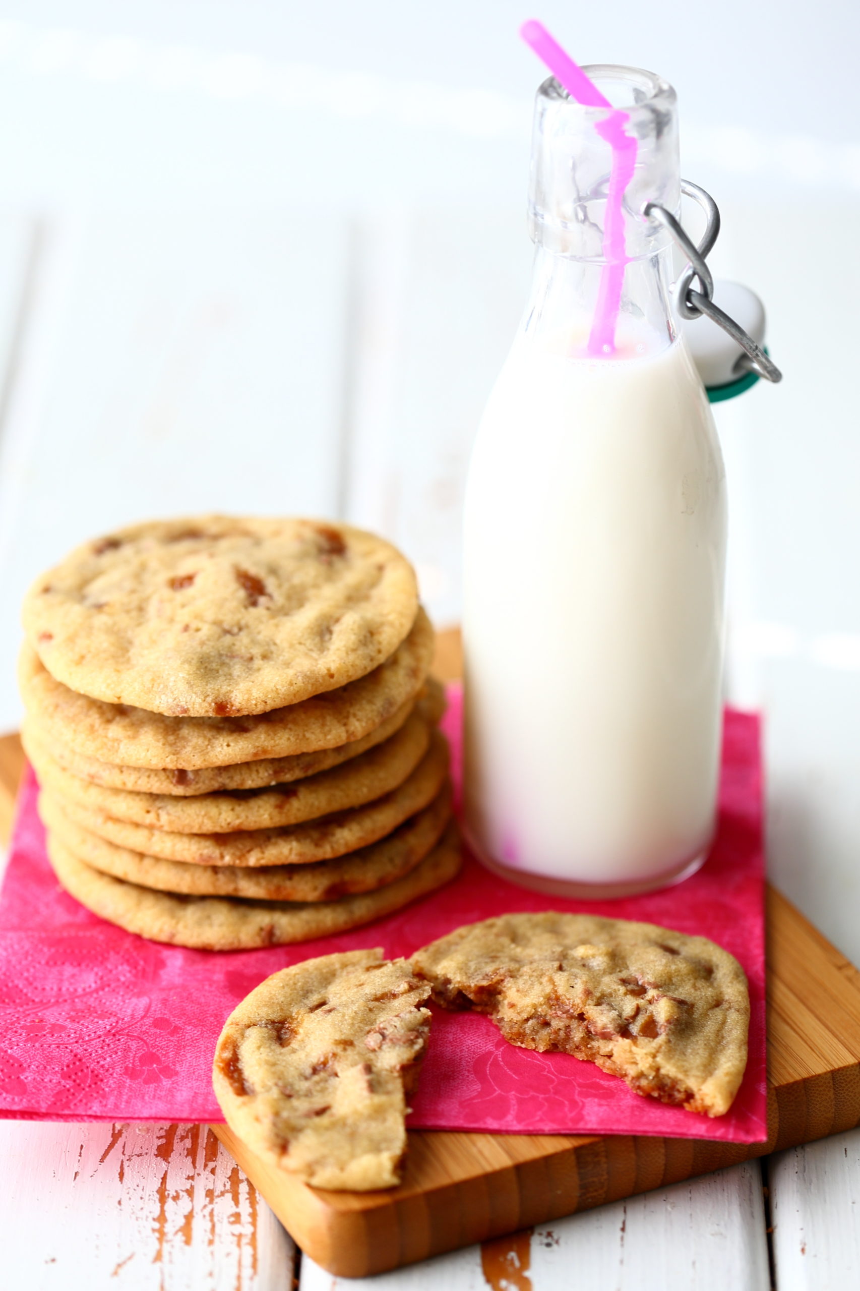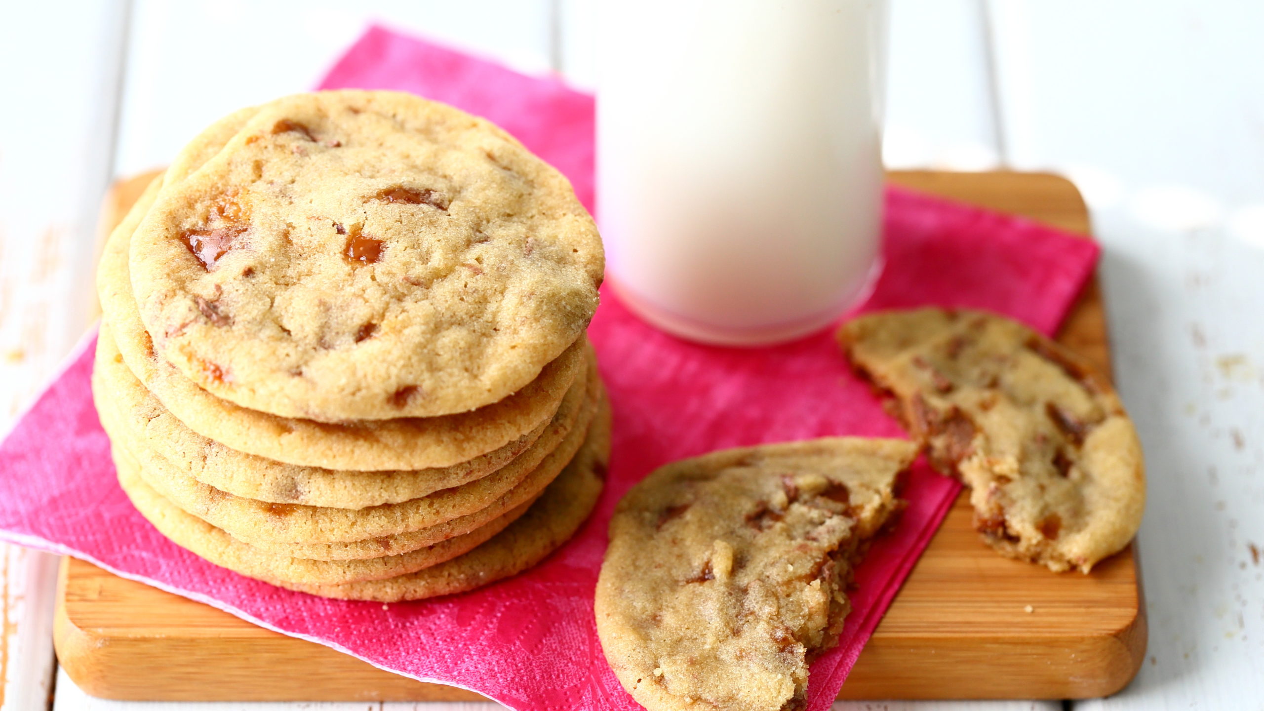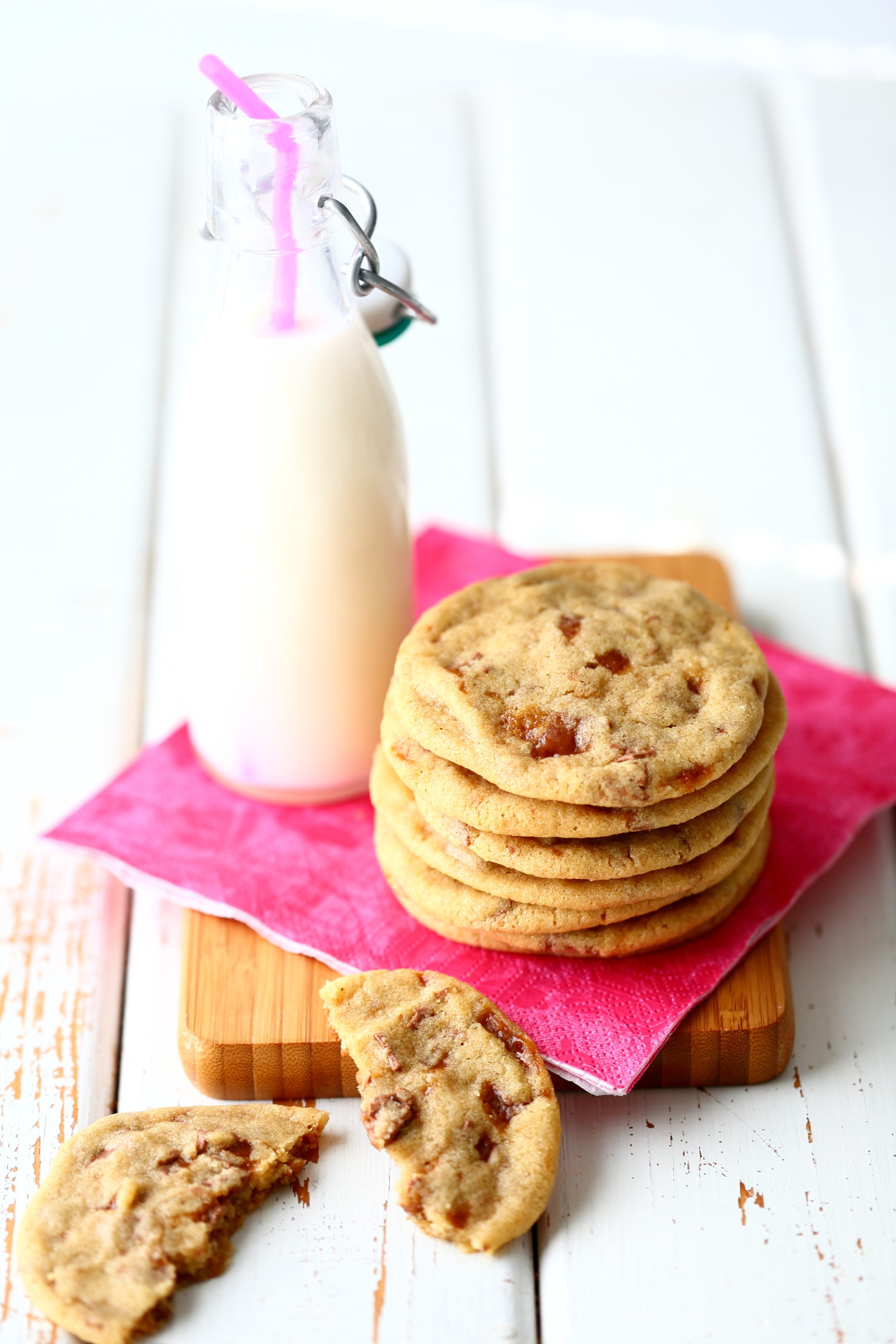 Kerroin sitruuna-passion-britakakku-postauksen yhteydessä, että täytin pyöreitä kesäkuussa. Britakakun lisäksi leivon ”juhliini” eli kotiväen ja äitini kanssa viettyyn kahvi- ja mehuhetkeen myös näitä Daim-keksejä. Nämä kaksi leivonnaista sisälsivät juuri ne maut, mitä rakastan leivonnassa eniten.