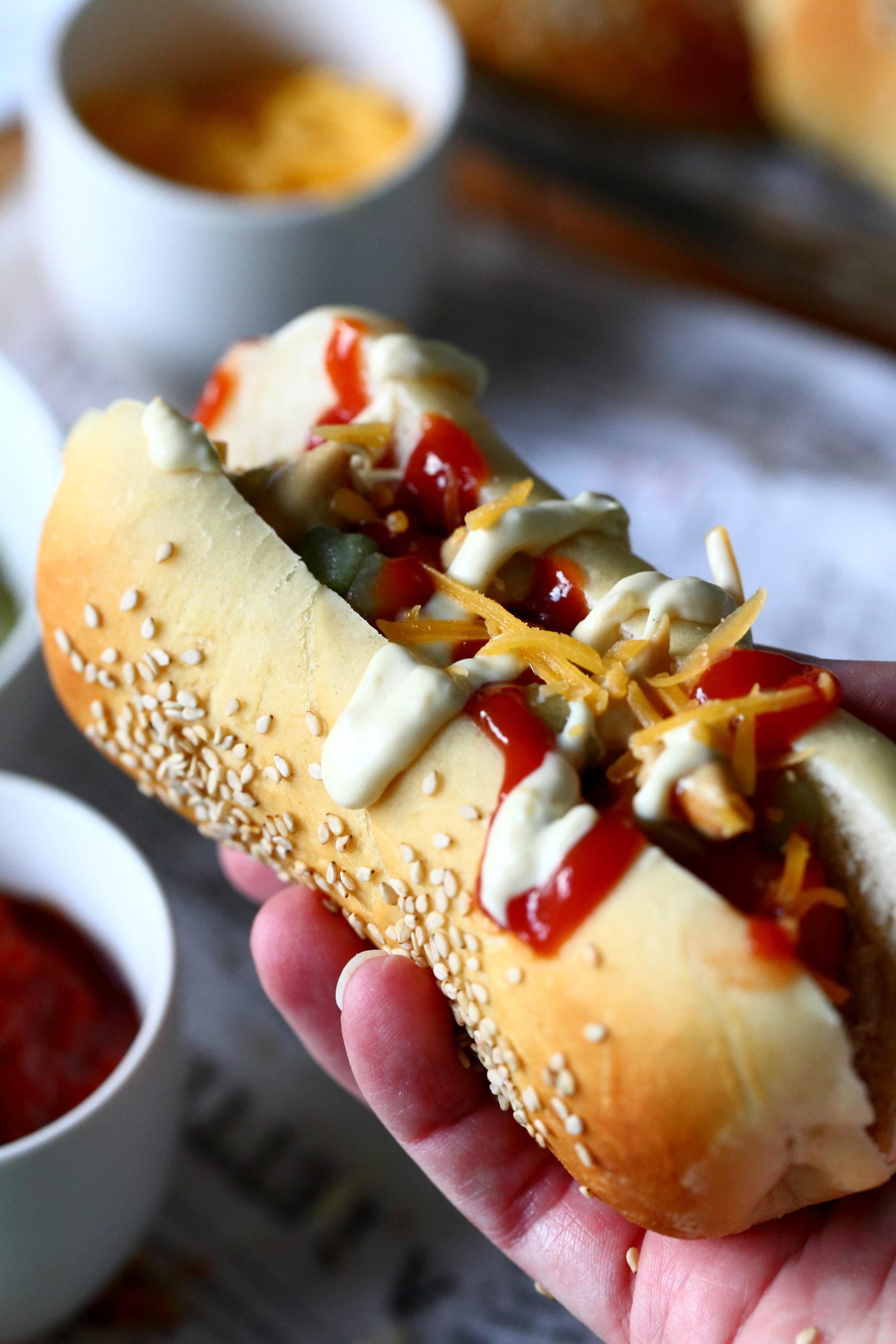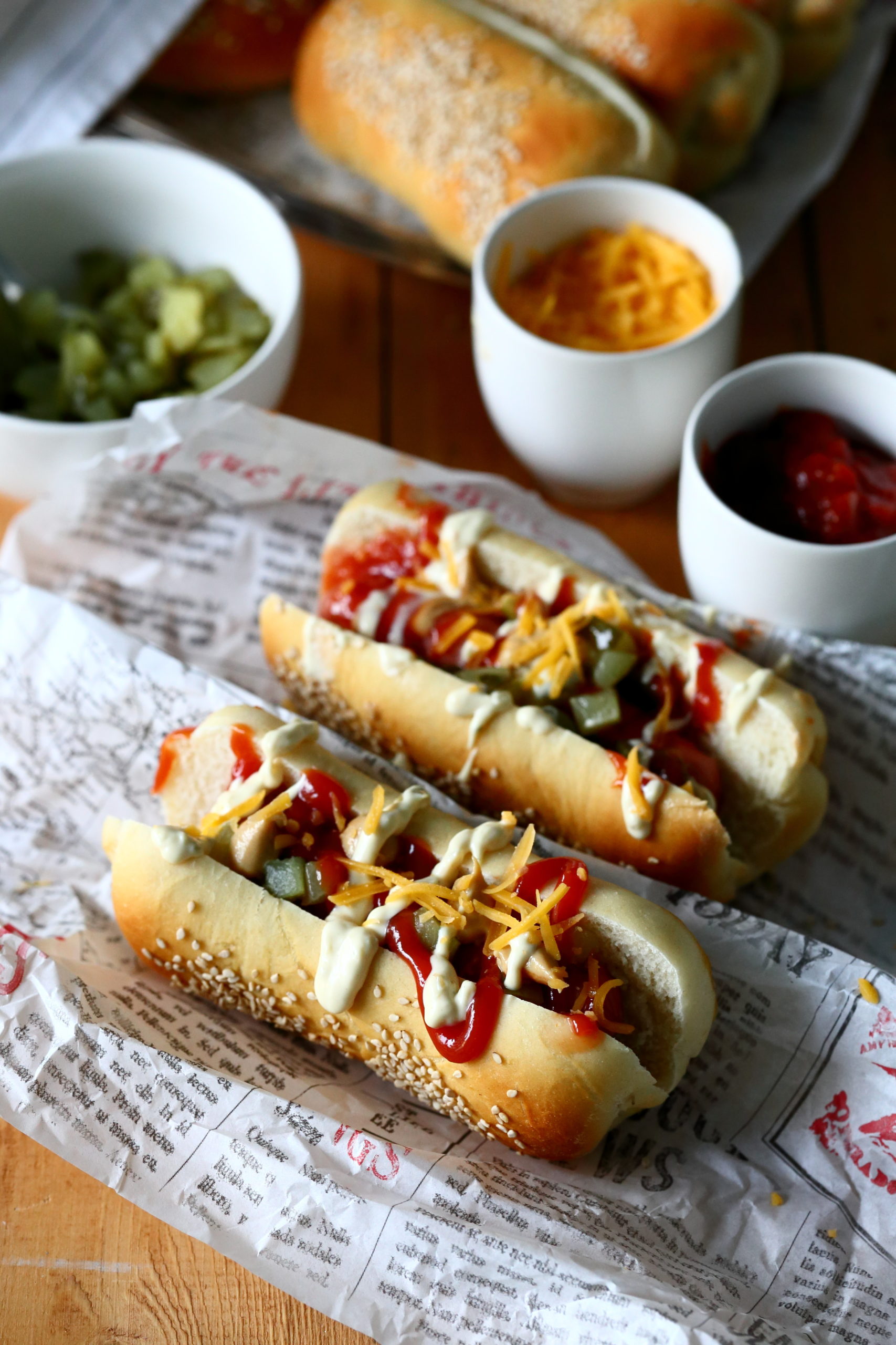 Paras hot dog -sämpylä ikinä! Näin ajattelin, kun maistelin näistä itsetehdyistä hot dog -sämpylöistä tehtyjä hodareita vähän aikaa sitten. Ne olivat pehmeitä, maukkaita ja ihanan kuohkeita. Laitoimme sisään tuolla kerralla vain normit hodaritäytteet eli nakkeja, sinappi, ketsuppia, chilillä maustettua majoneesia, suolakurkkukuutioita sekä hieman juustoraastetta. Mutta voi että kuinka erilaiselle ja herkullisilta ne maistuivat itsetehtyinä. Koska nämä kestävät pakastamisen, ajattelin lähiaikoina tehdä näitä pakkaseen valmiiksi seuraavaa kertaa varten.